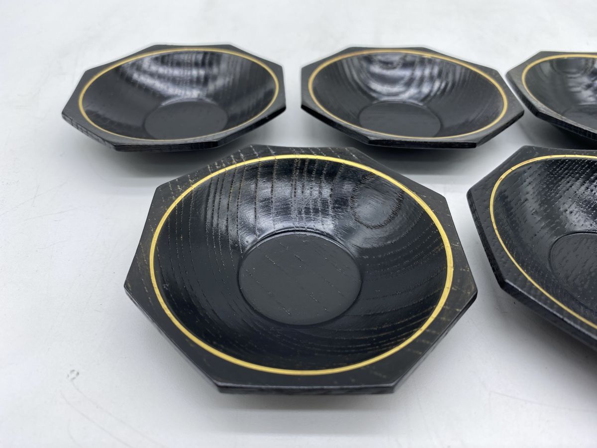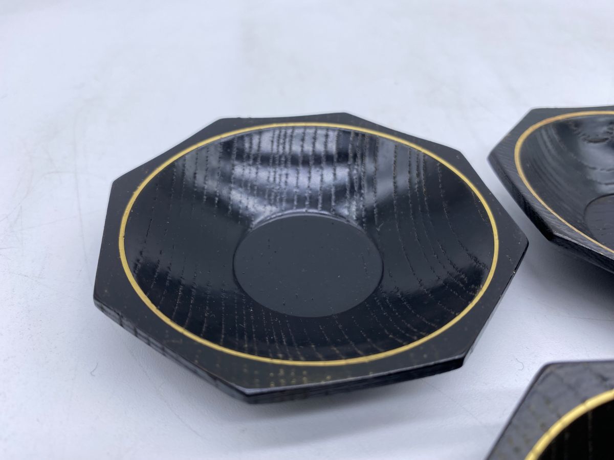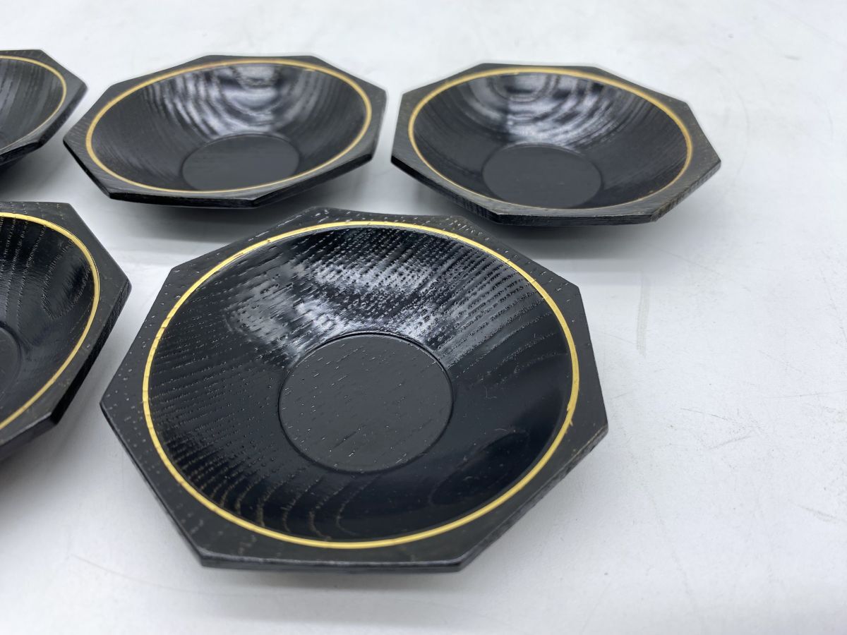 5客まとめ 欅黒 八角金線 茶托(13783)