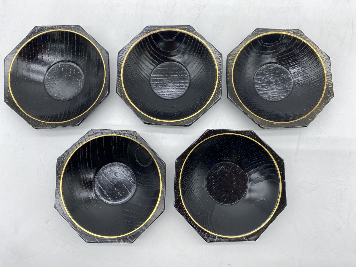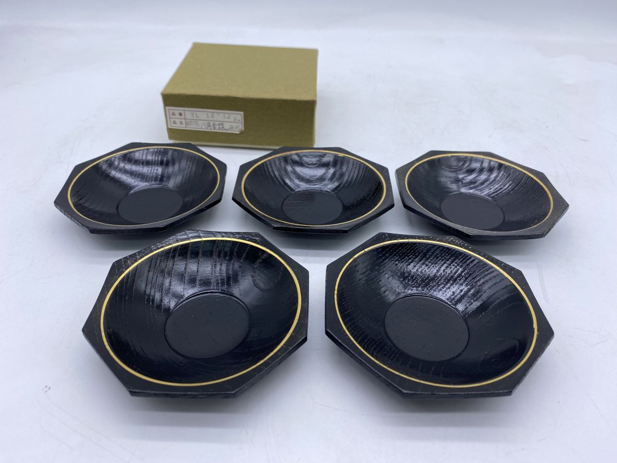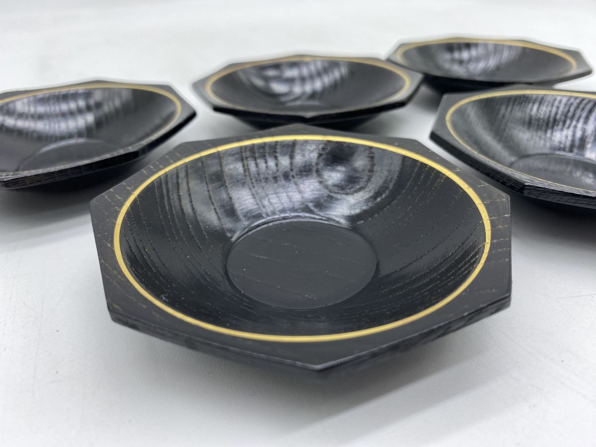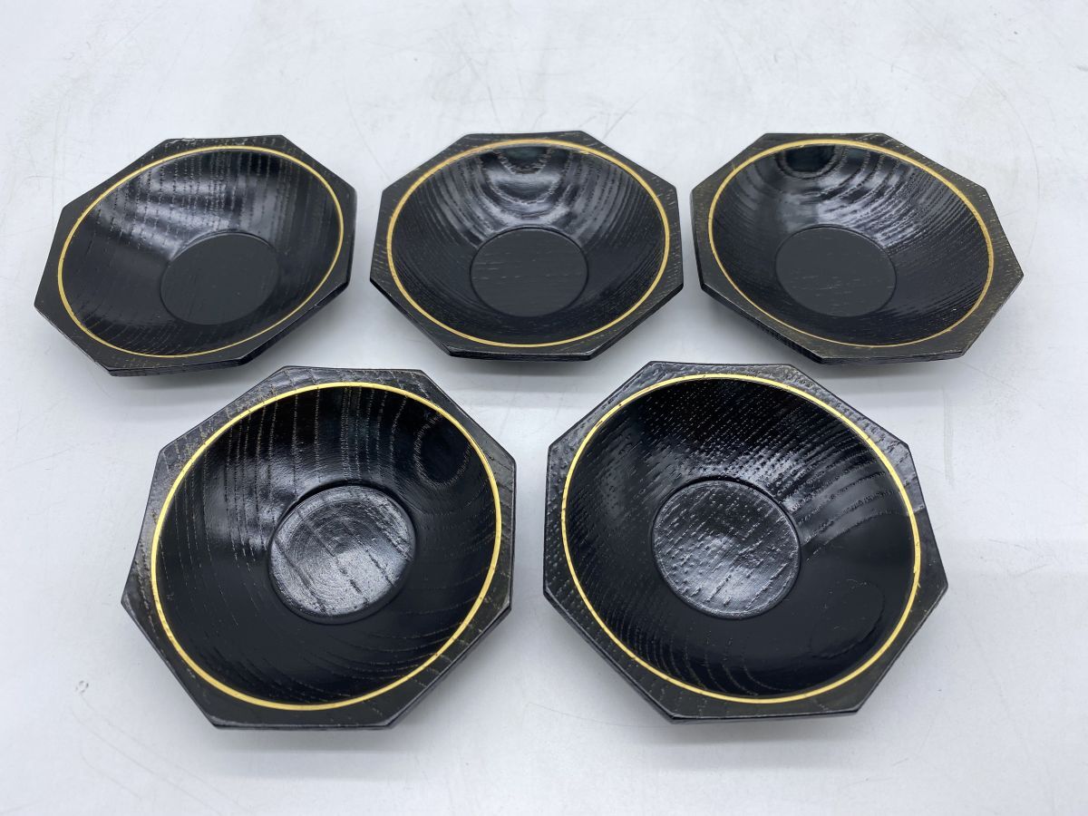 5客まとめ 欅黒 八角金線 茶托(13783)