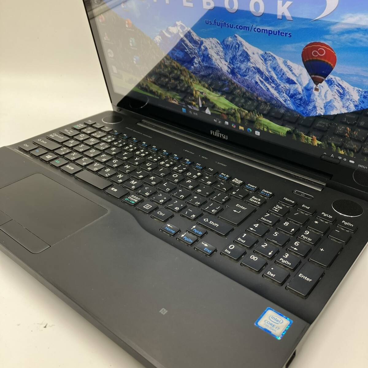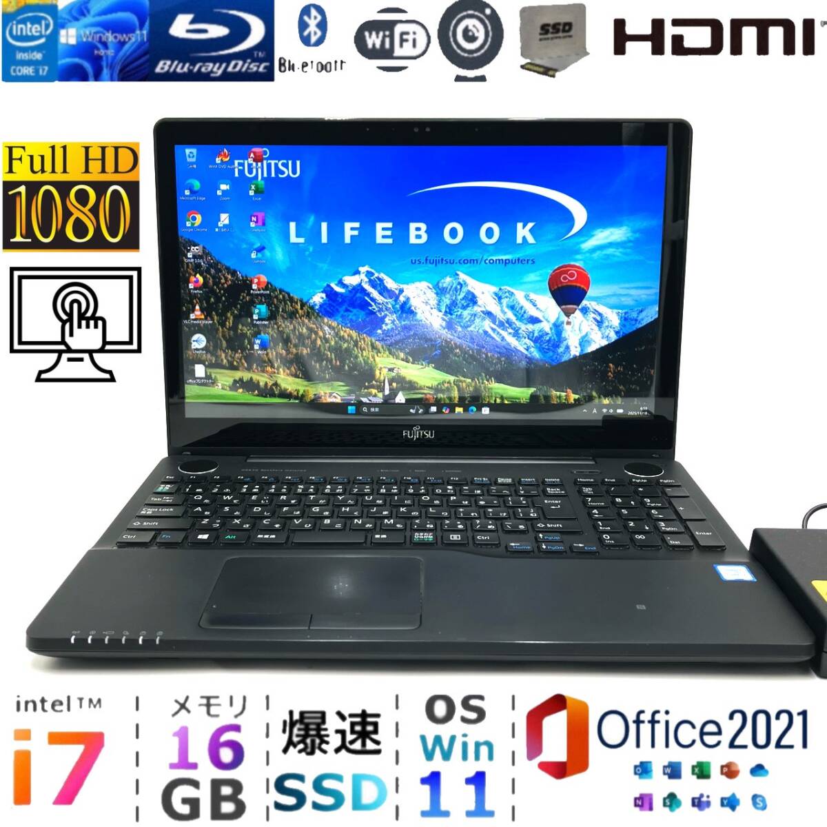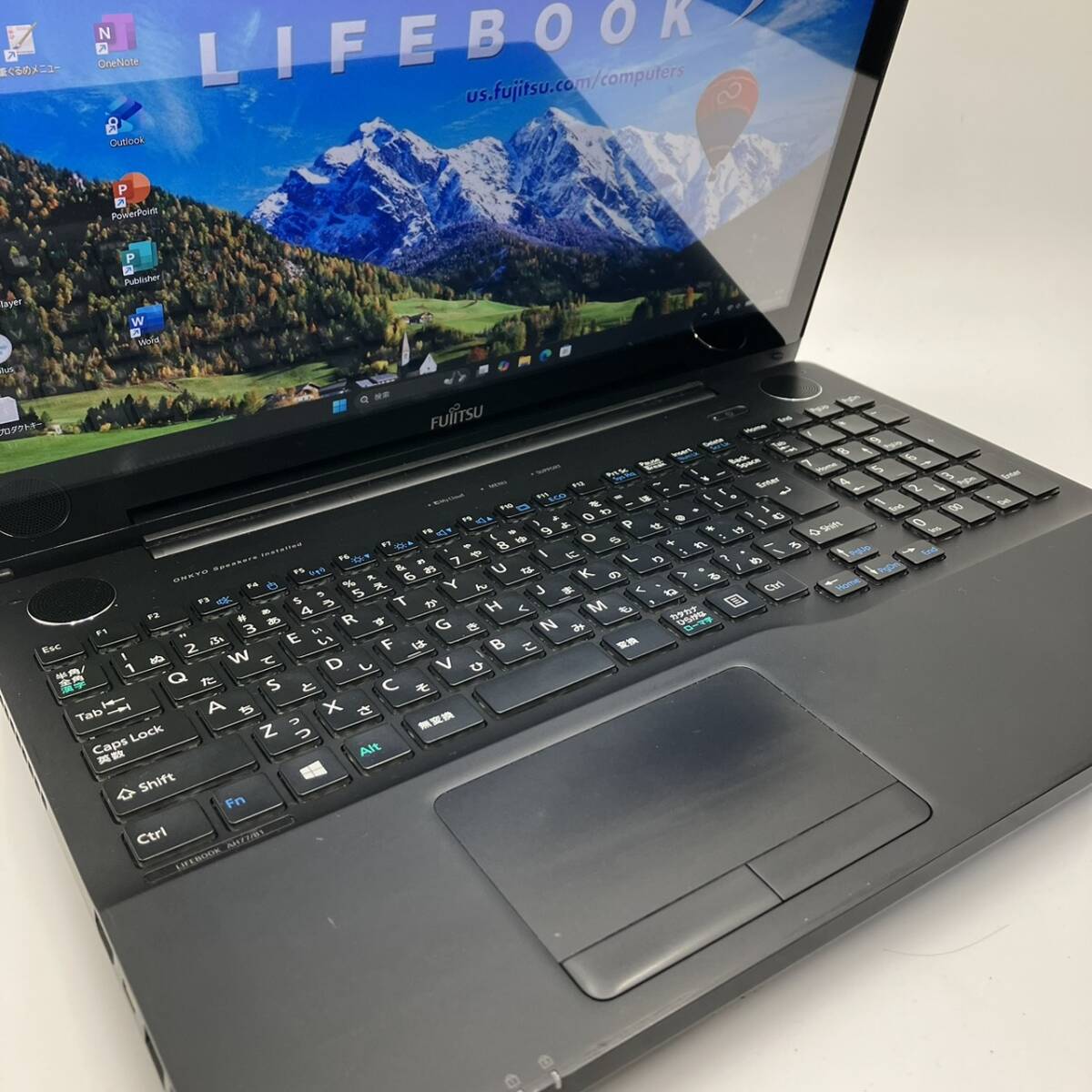 | 【配送商品の中身】 □ノートパソコン本体 (新品SSD、メモリ内蔵済み) □ACアダプタ □延長保証パンフレット ■メーカー・型番:富士通 AH77/B1 ブラック ■インストールOS:最新版Windows11Home64ビット ■CPU:Core i7-7700HQ(4コア/8スレッド) ■メモリ:DDR416GB(8GBx2) ■容量:爆速新品SSD512GB ■光学ドライブ:DVD-RW ■Office ・Microsoft Office 2021 Professional Plus(!から購入した正規品でプロダクトキー付属しています) ■装備 ●15.6型ワイドLEDバックライト付タッチパネル式 高輝度・高色純度・広視野角 TFTカラーLCD (フルフラットファインパネル) 1920x1080 ●無線LAN対応 IEEE802.11a IEEE802.11b IEEE802.11g IEEE802.11n IEEE802.11ac ●有線LAN対応 ●USB3.1(Gen2) Type-C×1(左側面×1) USB3.0 Type-A×2(左側面×2( うち1ポートは電源オフUSB充電機能付)) USB2.0 Type-A×1(右側面×1) ● HDMIポート搭載 モニターに出力して大画面での作業や動画視聴も可能 ●Bluetooth v4.1搭載 ●HD Webカメラ内蔵(有効画素数約92万画素) ●マイク・ラインイン・ヘッドホン・ラインアウト・ヘッドセット兼用端子(φ3.5mmステレオ・ミニジャック) ■動作確認