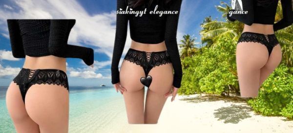 ☆新作 Sexy レース ランジェリー 3799☆おしゃれ フェミニン ししゅう シースルー クロス編み Tバック☆ブラック XL 現品限り おすすめ☆
