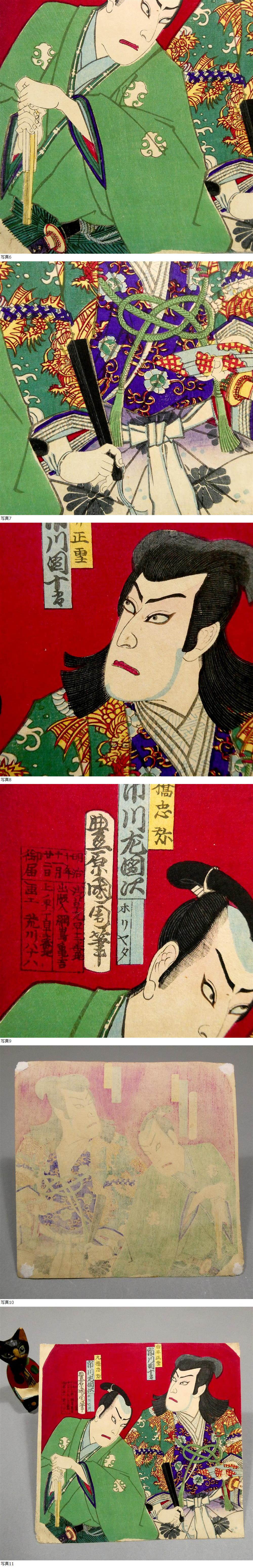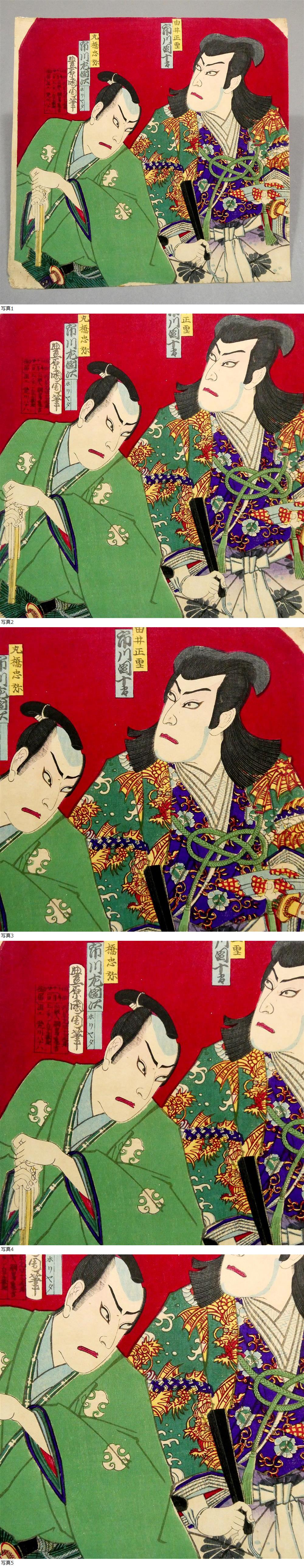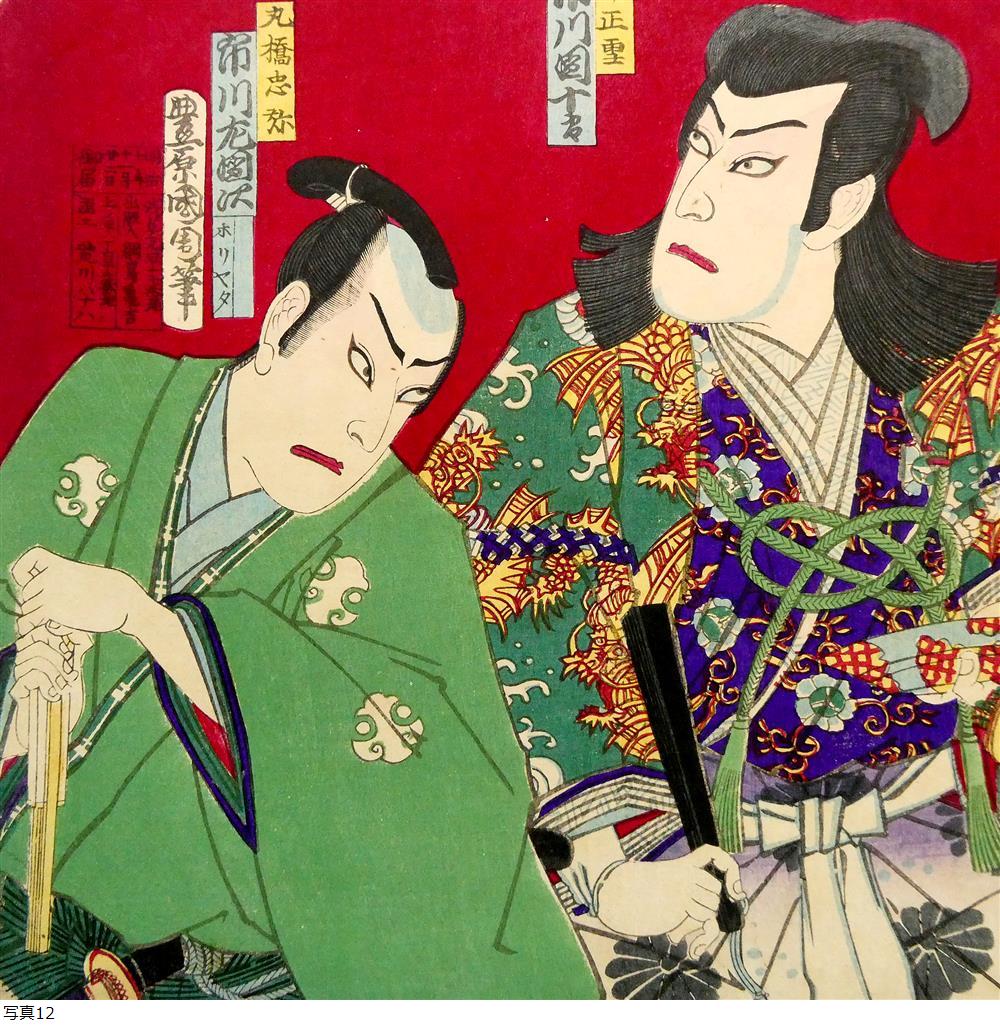 ■ 豊原国周 明治10年 木版浮世絵 役者絵 「由井正雪 市川団十郎」「丸橋忠弥 市川左団次」 “明治の写楽” ■