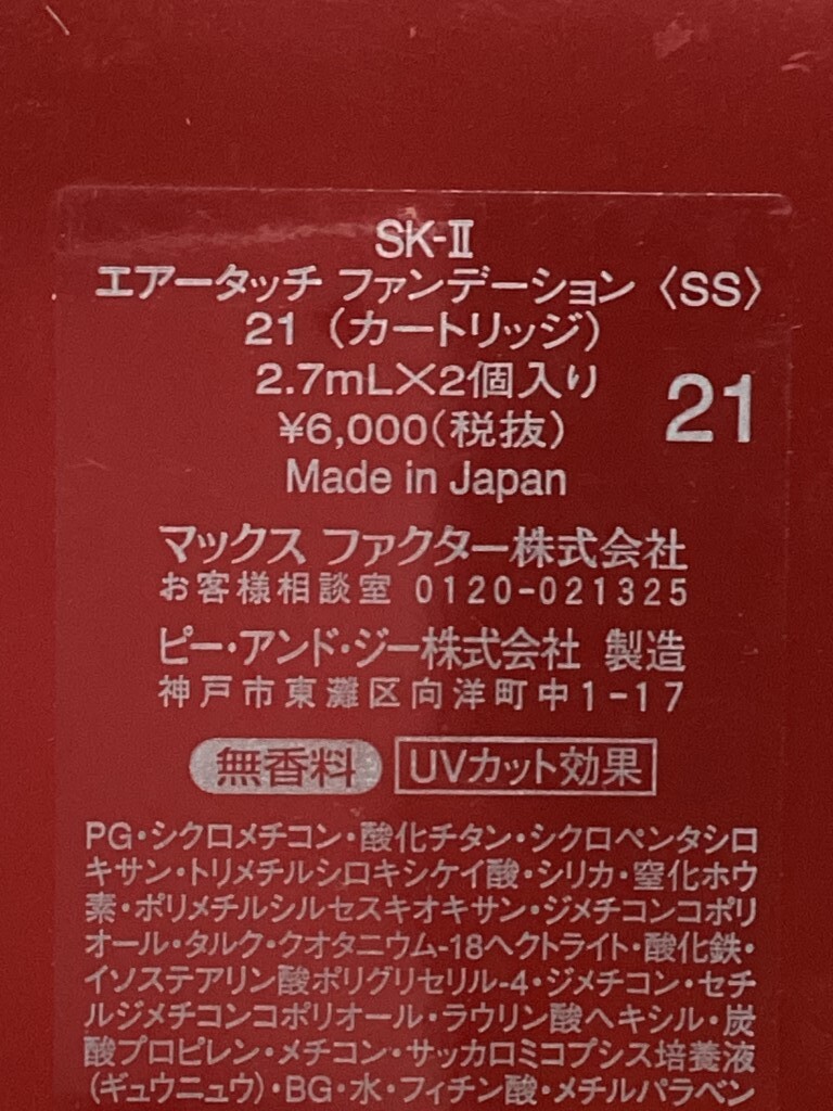 | SK-Ⅱ エアータッチ ファンデーション(SS) 21 カートリッジ 2.7ml×2個入り | |
