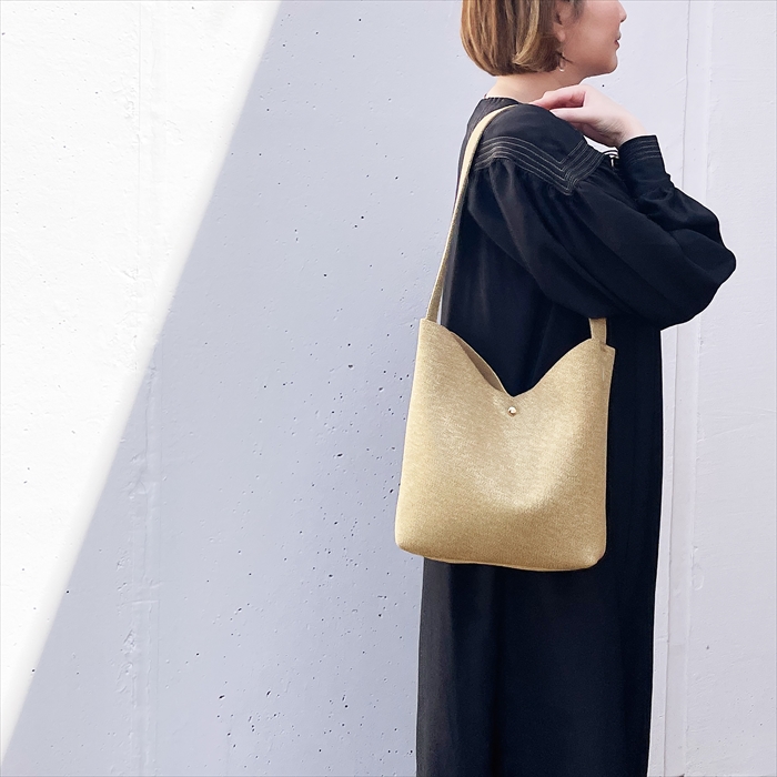 | サイズ | ヨコ(上部)32.5cm(下部)22cm×タテ28.5cm(中央部:22cm)×マチ8cm/持ち手:67cm |