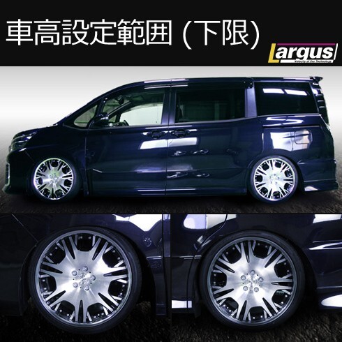 | LARGUS車高調のスタンダードモデルとなるSpecSと輸入車向けのSpecSI、軽自動車向けのSpecK、ローダウンに特化したSpecD、別タンク式のハイエンドモデルSpecRS、スポーツ走行に特化したSpecSRの全6種類の車高調をラインナップ。 |