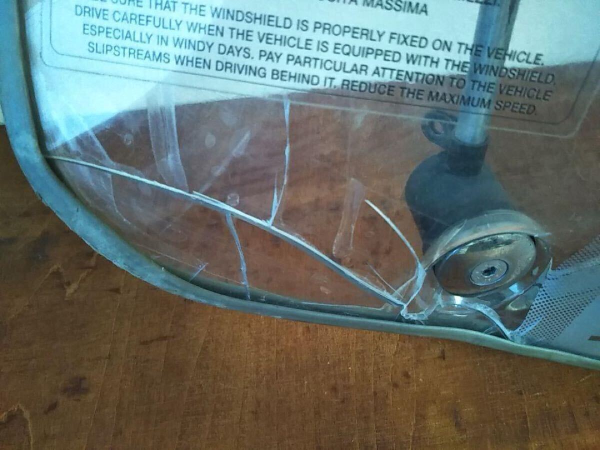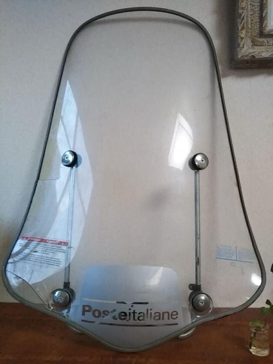 イタリア蚤の市で見つけた物で、Poste italiane(イタリア郵便局/ポステイタリアーネ)のバイクに使われていたスクリーンです。割れありますが、まず日本で見る事は無いですし、通常では出回らない物だと思います。