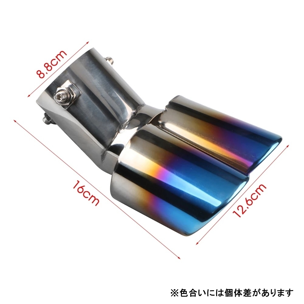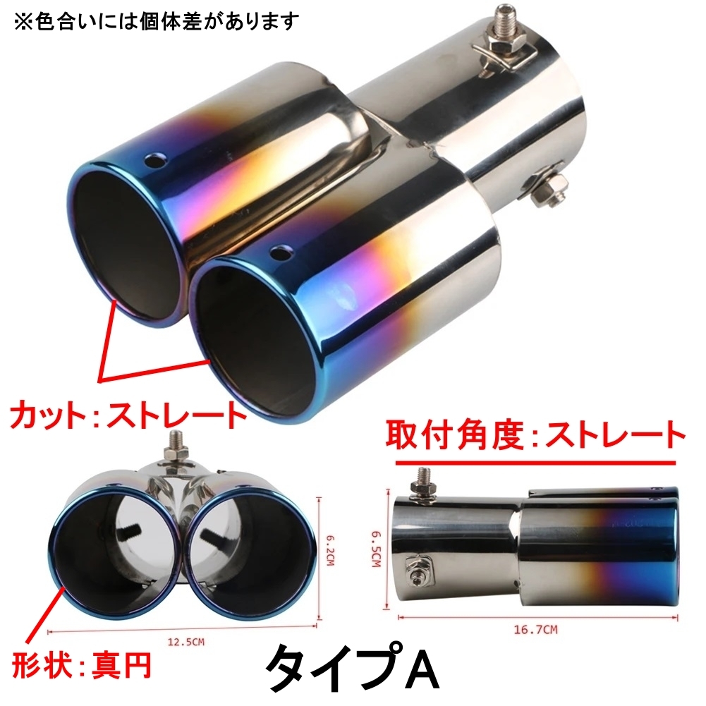 | 商品内容 汎用マフラーカッター 特徴 ・装着可能マフラー外径:38mm~63mm ・数量:1個(※両サイドマフラーの場合は2点お買い求めください) ・出口数:2(デュアルタイプ) ・材質:全タイプステンレス製になります ・選べる5タイプ(商品画像参照):タイプA/タイプB/タイプC/タイプD/タイプE ※タイプA/タイプB/タイプCは色合いに個体差があります 適合確認 ※タイトルにある車種は参考車種になります。 ※タイトルにある車種でも排気量やグレードによって マフラーの外径やリアバンパーの形状が異なります。 必ずマフラーの外径とリアバンパー形状 及び商品の寸法をご確認ください。 取付に関する注意事項 ・専門業者様による取付を推奨しております。 ・火傷防止のためマフラーが冷えた状態で作業してください。 ・脱落防止のため定期的に増し締めしてください。 ・取付、使用に関わるケガ、事故等につきまして 弊社は一切の責任を負いかねます。 |