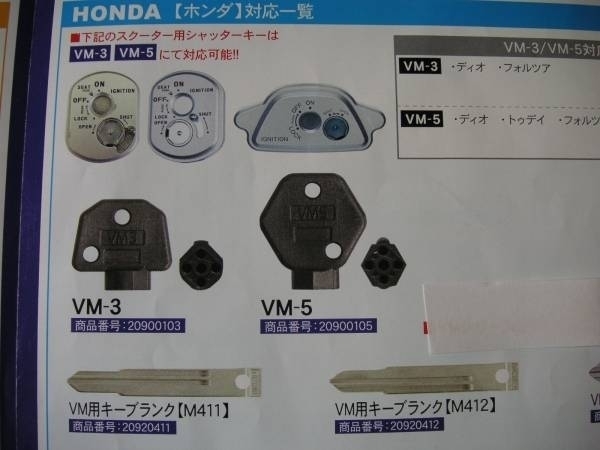 | ・ブランクキーで自分のスクーターのシャッターキーを作ります。説明書どうりに作業してください。当たるところの形・バイクのメーカーを良く見て確認下さい。間違わないでください。 | ||