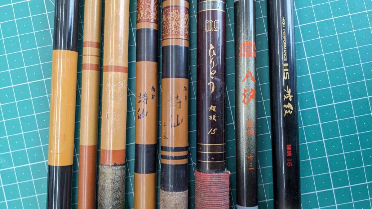 | #2335 ヘラブナ竿 浮き 八汐 ひりゅう HS波紋 詩仙 銀将 江戸川 他 釣り竿6本 & 浮き15本 おまとめ | ||