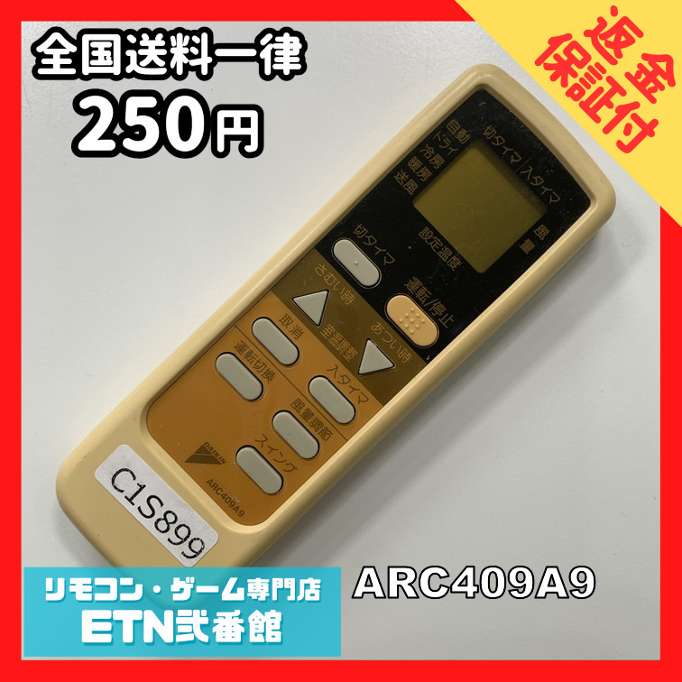 C1S899 【送料250円】エアコン リモコン / Daikin ダイキン ARC409A9 動作確認済み★即発送★ 冷房 暖房