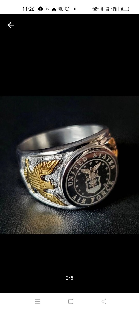 アメリカ空軍モチーフの彫刻と両サイドにはゴールド色のイーグルがあしらわれたメンズリングです。| 出价者 | 信用 | 价格 | 时间 |