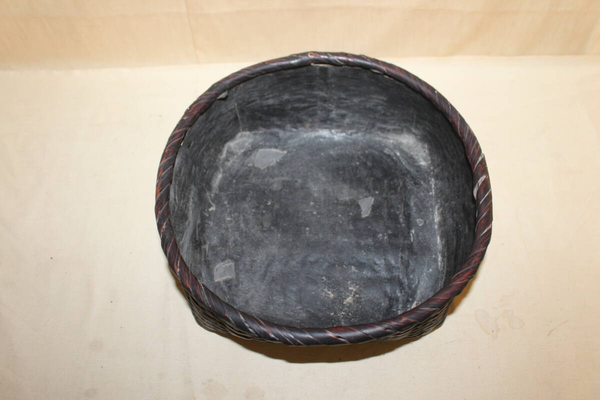 商品詳細 茶道具竹炭かごの出品です。 経年の風合いがあり時代感ある品と思います。 銘等の記載は無い物になります。 産地や年代等の詳細については不明とさせていただきますのでご了承下さい。 経年の汚れやスレ傷アタリ傷等はご容赦下さい。 状態は画像にて判断願います。 サイズ 径:約26cm H: 約9.5cm ★当方、古いものを主体として出品させて頂いております。 点検は致しておりますが汚れや傷等の見落としがある場合がございます。 ご了承の上よろしくお願い致します。 ★発送詳細 ・佐川急便の予定です。 ★支払方法 ・!かんたん決済 他にも色々出品しています。よろしかったらご覧になってください。
