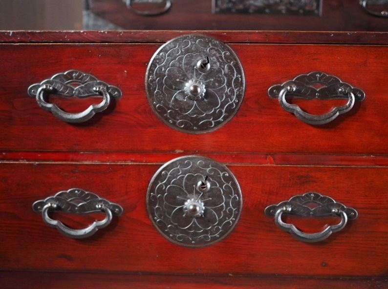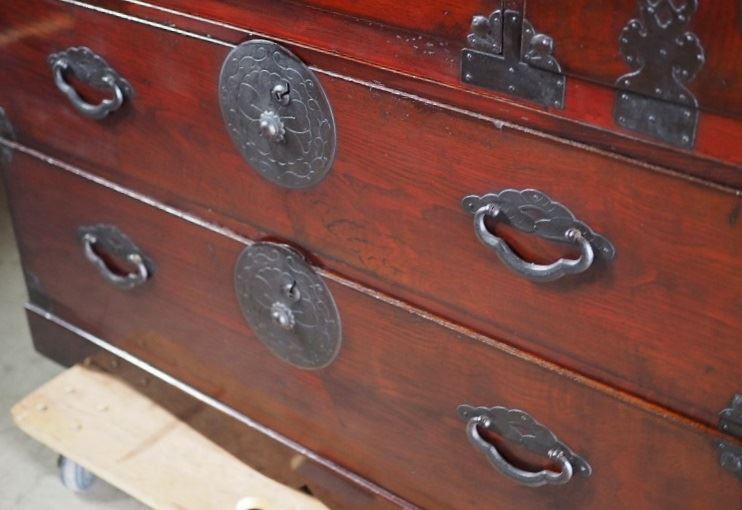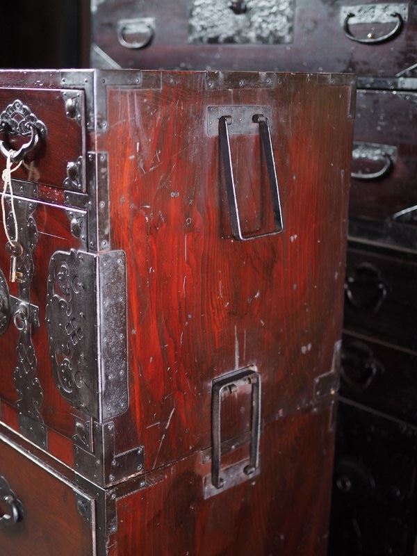 | 米沢衣装箪笥 桜丸 山形・時代箪笥 上下セット カギは開き戸のみ有効 大正時代 古録展 送料別 Mサイズ 中古 品番S10786 | |