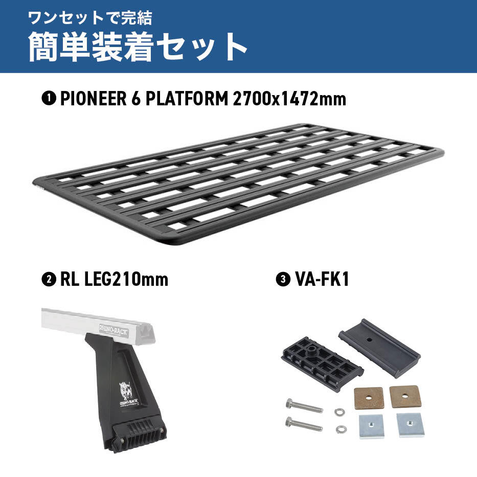 | 詳細 | ・Pioneer 6 Platform (2700mm x 1472mm) 62105 :1pc ・RL Leg (x2) RL210S10:4pcs ・VA BAR FIT KIT FOR RL LEGS (x2) VA-FK1:4pcs |