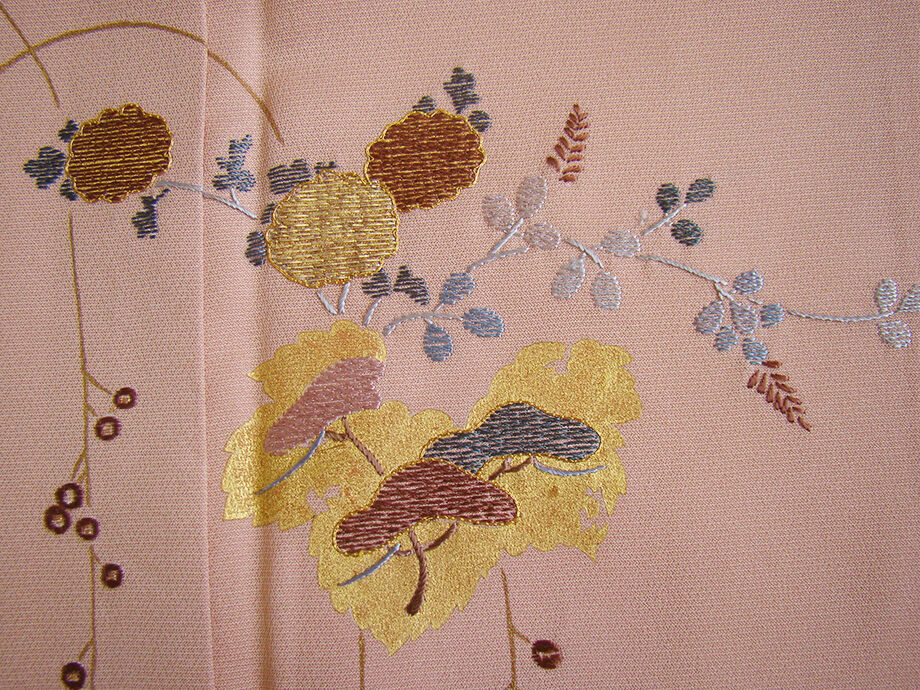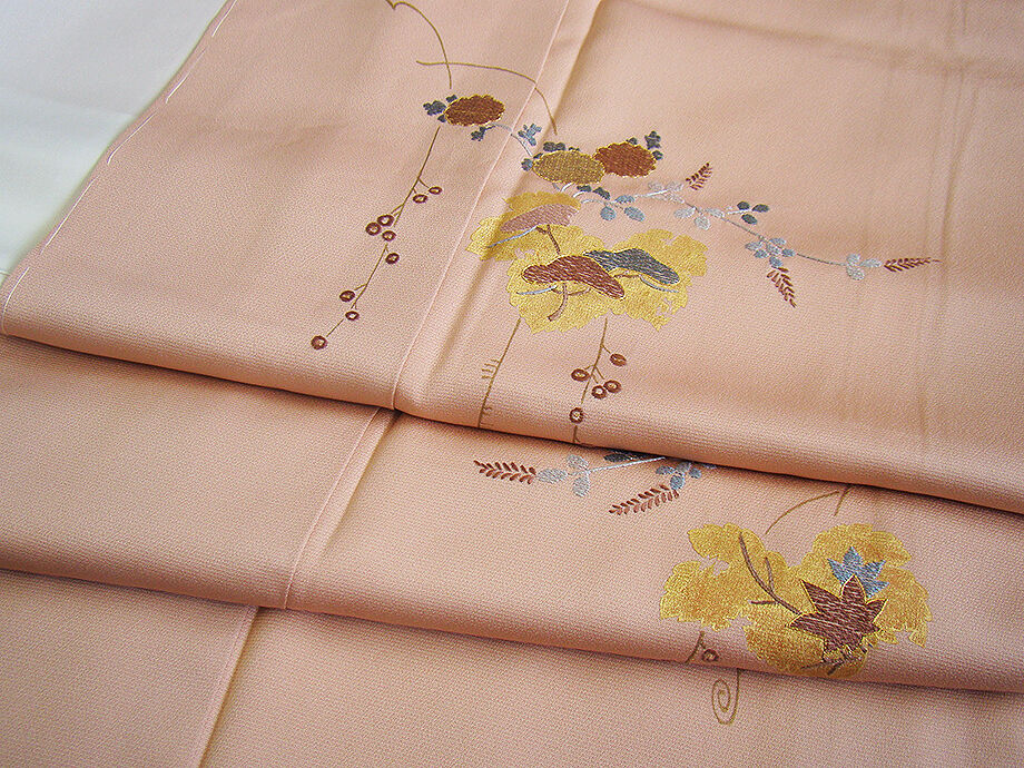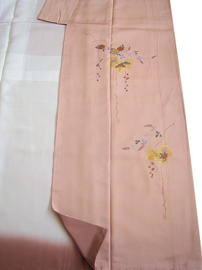 | 商品説明 | こちらのお品は「袷」ですので10月から5月までお召頂ければと思います。 とてもしなやかで柔らかな手触りの着心地良い重めの上質な極上一越地の生地、 虹色地に蔦柄の金彩加工染に刺繍入り、 八掛は梅鼠色(正絹)、幅広い年代の方にお召頂けます。 |