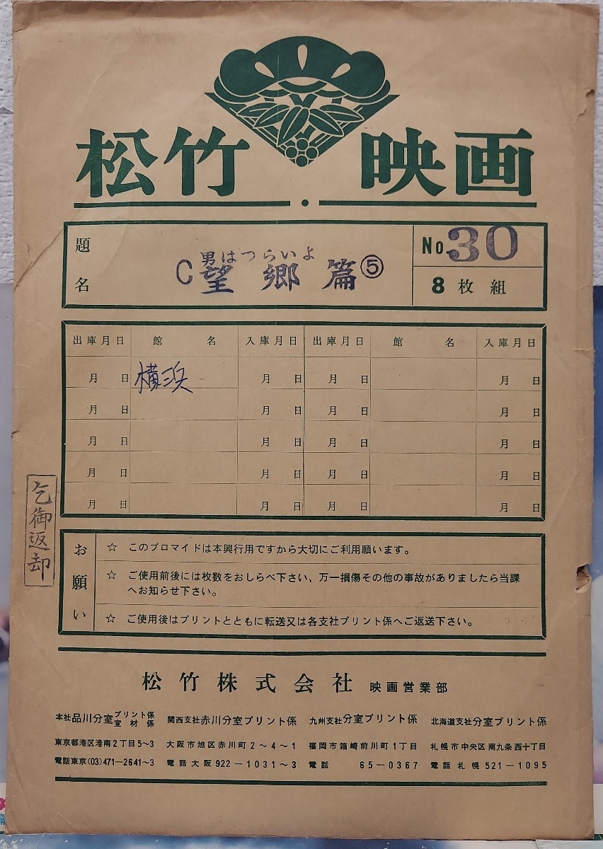 希少 当時モノ 昭和 松竹映画 C男はつらいよ 望郷篇⑤ No.30 8枚組 映画 宣伝 印刷物の出品です。