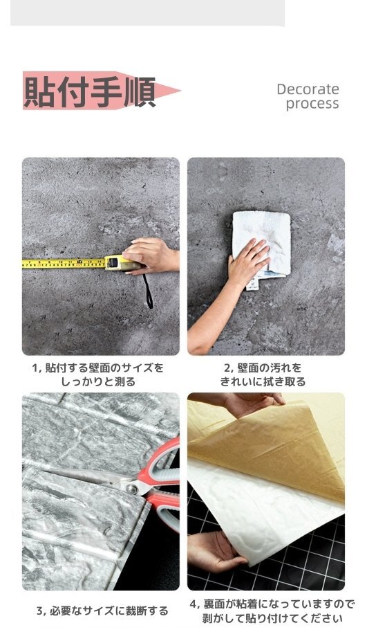 新品 レンガ柄 3Dクッションウォールシート 70x77cm 厚み3mm 10枚セット レンガ柄 3Dクッションウォールシート 70x77cm 厚み3mm 10枚セットです。 シールタイプですのでハサミやカッターで好きな大きさにカットして貼るだけで誰でも簡単に施工できます。 立体的なレンガ柄のデザインがお部屋をオシャレに大変身させてくれます。 高密度ポリエチレンフォームを採用しているので、断熱性・耐久性・抗菌性・遮音・防水・吸音効果も優れています。 【 製品スペック 】 サイズ:70x77cm 厚み:3mm デザイン柄:写真 1-2枚目参照 材質:XPEエコ フォーム 枚数:10枚 【 製品特徴 】 ●耐久性が抜群、長期間使用可能 ●保湿性・断熱性・耐久性に優れており変色や変形がしにくい ●遮音・吸音性能に優れています ●防水・防汚・防カビ性能あり。汚れたら簡単に拭き取り可能 ●カッティングシートでハサミやカッターで好きな大きさにカットして貼るだけで施工可 ●軽く、柔らかいクッション素材でクッションガードとしても使用可 【 貼り付け可能素材 】 金属、ガラス、ビニール、セメント、木材 等 また一般的な壁紙の上からでも貼り付け可能 【 貼り付けをおすすめしない素材 】 すりガラス等凹凸のある面、和紙・障子など破れやすい素材、ペンキなど塗料を施した面 等 ※商品使用開始時点においては若干の匂いがありますが、数日程度で匂いは消えます。 ※商品をプチプチで包んだ荷姿での商品発送になります。 こちらの商品は他の商品との同梱発送はできません。 |