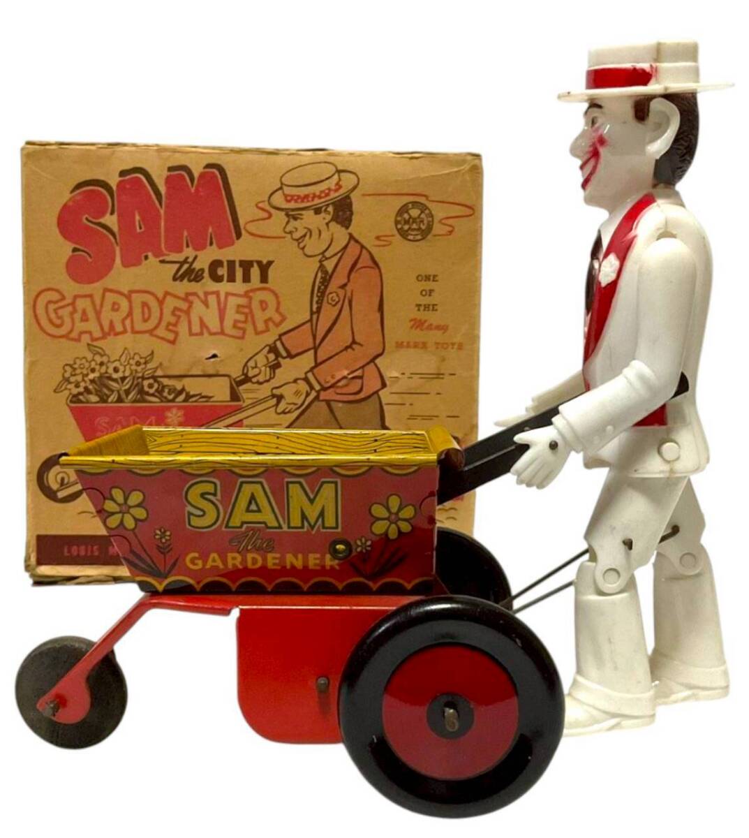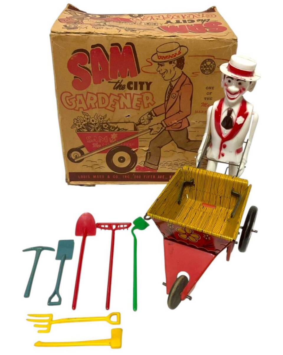 C9.【動作確認済】超希少 1950年代 庭師のサム ゼンマイ ブリキ玩具 Marx USA製 30cm
