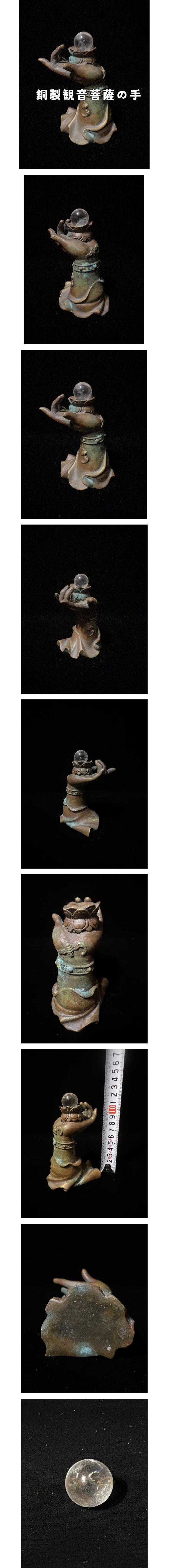 | 商品説明 | 銅製観音菩薩の手、また球体の置台になります。 緑青も程よく時代あり、素敵な逸品です。 ガラス玉の様に見えますが水晶かもしれません。 画像にてよくご確認下さい。 サイズ 高さ約12cm 重量 約450g ・品物に年式が記されている物以外の制作年月はあくまで当方の主観、または入手時に前所有者より聞き及んだ年代です。参考値としてご理解下さい。 ・1円、1000円などの低額スタートにて想定より大幅に金額が到達しない場合や また記載項目と実際の品に乖離があった場合を出品取り下げる場合がございます。 入札後の取り下げは出品者の権利として上で認められております。 当出品は営利で運営しており不用品等の譲渡ではない為、ご理解の程お願い致します。 その場合、定額にて再出品させて頂きますが、初回の1000円スタートでの落札価格が最も安価に入手できる機会となる為、初回の定額スタートにて入札をお勧めいたします。 |