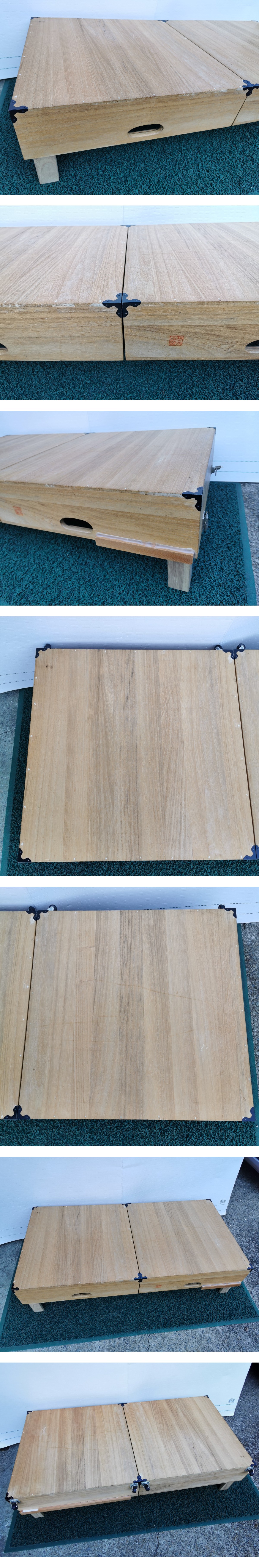 | ☆ご覧いただきましてありがとうございます☆ ■商品説明 ◆木製 折りたたみ平台(箱足/開き足)キャスター付◆木製ステージ台/舞台大道具◆H270×1140×570mm 朱印有■置台/平台/舞台/大道具/演台/和楽器/日本舞踊/落語/詳細不明 サイズ(約) ・設置時:幅1140×奥行570×高さ270mm ・折畳み時:570×570×285mm ・重量:約6.2kg ・本体(左右一体・中央蝶番・角金具・キャスター付き) ・脚ブロック×5(番号書き込みあり) ・当て板×2 ■商品状態 ・家じまい、整理品になります。 ・キズ、スレ、軽いシミ、汚れ、打ち傷、補修・添え木等の加工あり ・ガタつき/水平は設置環境で要調整 ・耐荷重・メーカー等は不明/現状渡し ・状態につきましては画像をよくご確認ください。 ・出品物は画像に写っているものがすべてです(撮影用スタンド等は含みません)。 ・写真の色合いはご覧の環境によって実物と異なる場合があります。 ■お 取 引 方 法 / 条 件 ・取引ナビでのお取引となります。 ・落札後48時間以内に取引ナビにて取引開始がない、または連絡が取れない方は落札様都合で削除する場合があります。 ・評価数が少なくてキャンセル履歴、悪評価の多い方の入札はご遠慮お願いいたします。 ・大変申し訳ありませんがトラブル防止のため、新規IDの方は入札前に質問欄よりご連絡下さい。 (ご連絡いただけない新規IDの方は削除させて頂く場合があります) ・個人出品につき、消費税はかかりません。 ・お荷物が到着しましたら、中身をご確認の上、「受け取り連絡」をお願い致します。 ■発 送 方 法 ・ゆうパック(追跡番号あり) ☆配送の梱包は基本的に再利用資材が多いですが、しっかり丁寧な梱包を心がけています。 ■ お支 払 方 法 ・ヤフーかんたん決済 ■備考 ※いたずら入札につきましては通報/評価も含め厳正に対処します。 ※個人出品につき、関係するトラブル、事故などに関して一切保障できませんので、 新品の状態や保証が必要な方の入札はお控えください。 ・過度に状態を気にされる方や、完璧をお求めになられる方の入札は、トラブルを避けるためにも入札を御控えいただきますようお願い申し上げます。 ・気になる点がございましたら入札前にお気軽にご質問下さい。 ・以上を踏まえノークレーム・ノーリターンにてお願いいたします。 | |