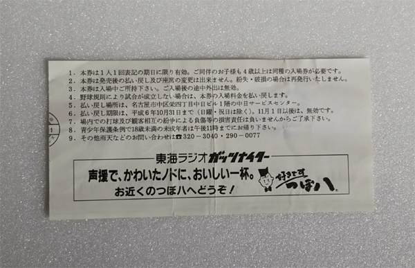 1994.10.8巨人vs中日の半券です| 出价者 | 信用 | 价格 | 时间 |