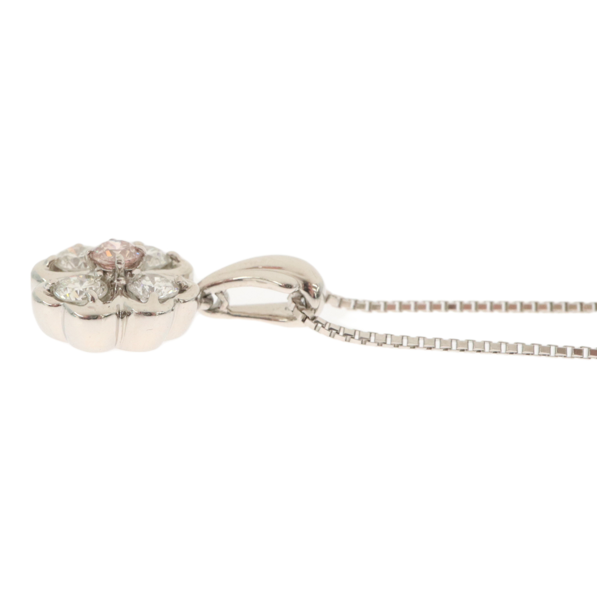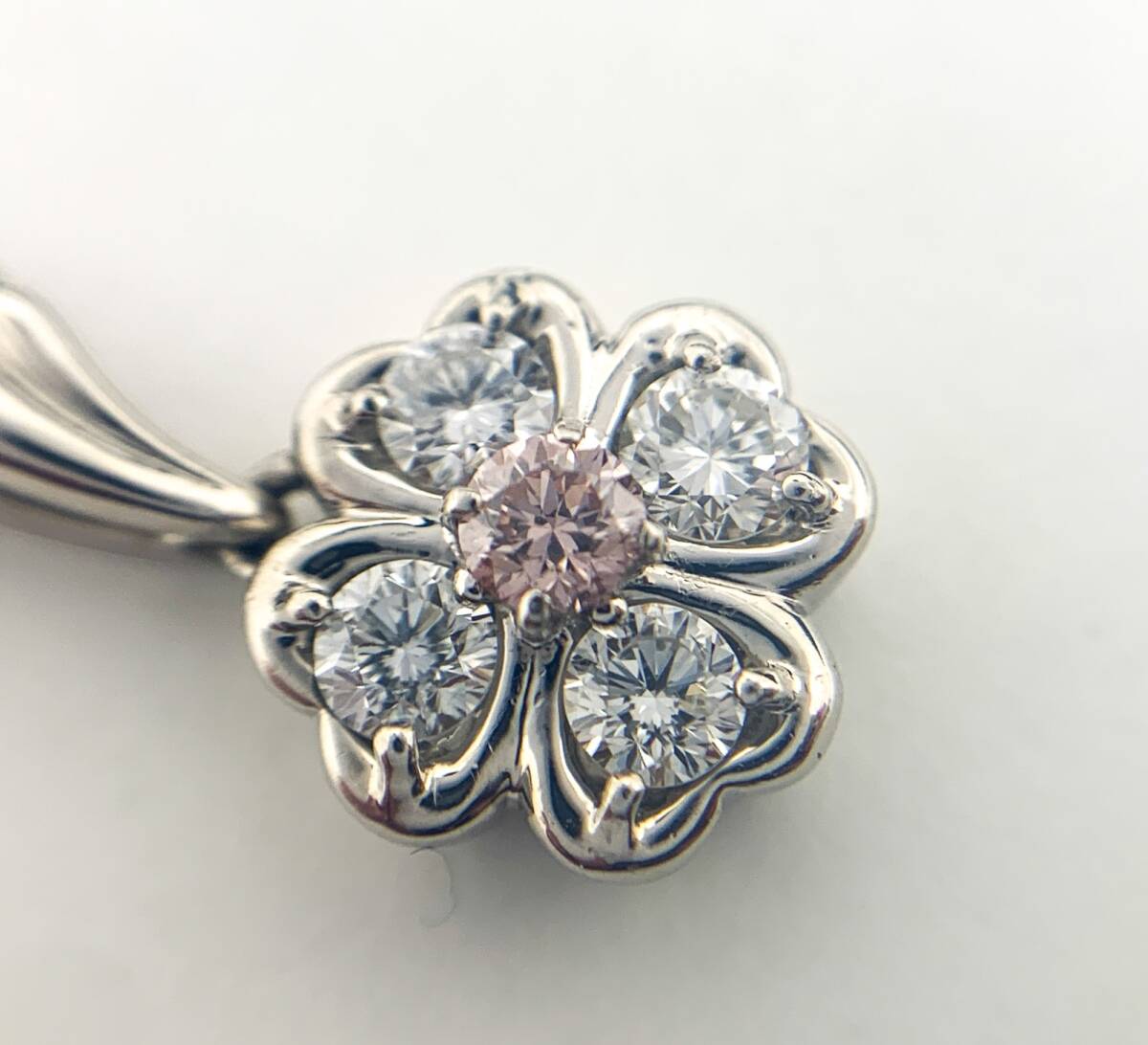 | フラワーモチーフのプラチナネックレスです。天然カラー(ナチュラルカラー)のピンクダイヤモンドがセッティングされております。ダイヤはFANCY LIGHT ORANGY PINK-SI2(MB)グレードのものがセッティングされています。ダイヤモンドに欠けはございません。Aランク。新品仕上げ済みのお品になります。仕上げでは取り切れない小傷はご了承くださいませ。 | |