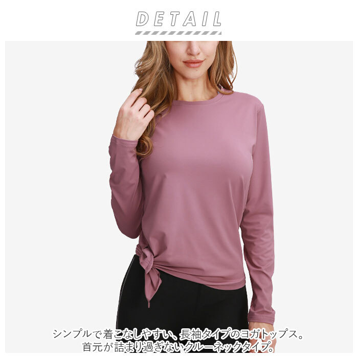 | 商品説明 | ・・シンプルで着こなしやすい、長袖タイプのヨガトップス。 ・首元が詰まり過ぎないクルーネックタイプ。 ・滑らかでサラッとした肌触り。 ・伸縮性もばっちりで動きやすいのがポイント。 ・速乾性があり、洗ってもすぐに乾くのが嬉しい! ・裾部分は片サイドにスリットの入った、斜めカットデザイン。リボン結びアレンジもOK♪ ・ヨガはもちろん、ジムなどでのトレーニングウェアとして活躍! |