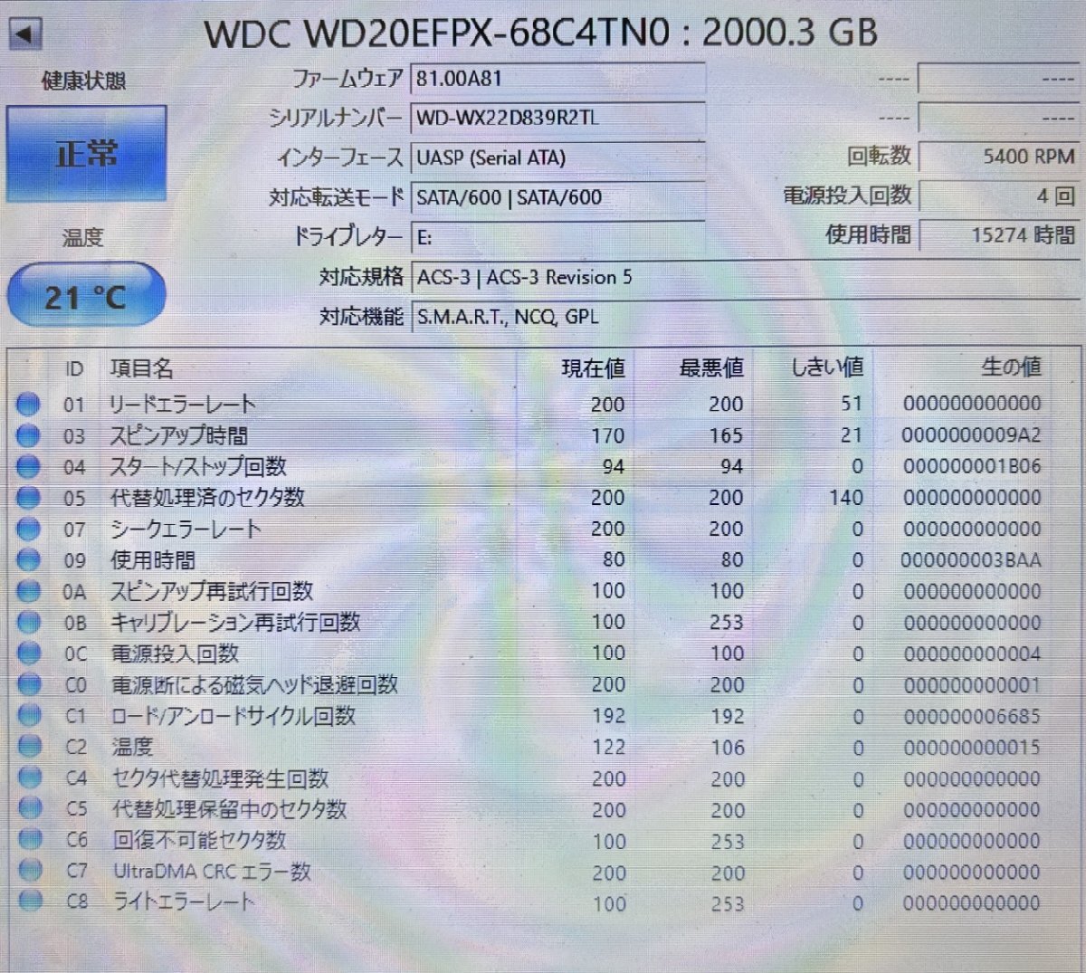 キズ等のチェックおよびクリーニングの実施:HDD表面にはディスク挿入時の軽微な線キズがある場合がございますが、ご使用には問題ありません。