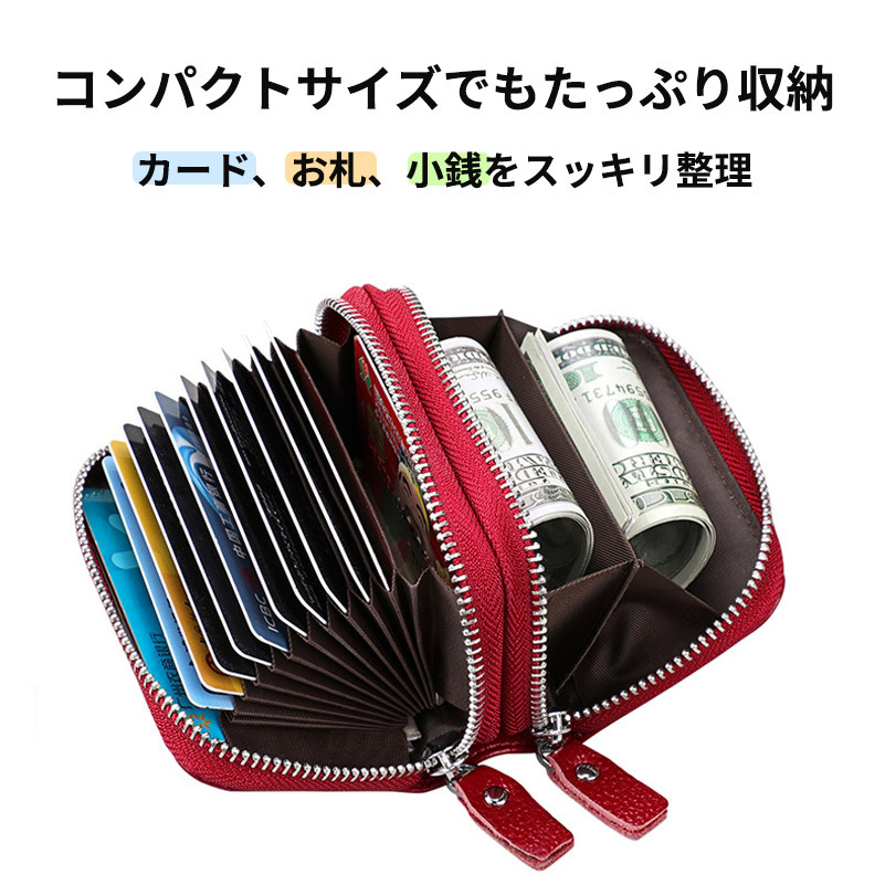 【ブラック】ミニウォレット カードケース 本革 銀付き牛革 ミニ財布 ダブルファスナー ジャバラ 小銭入れ コインケース メンズ レディース | |||
