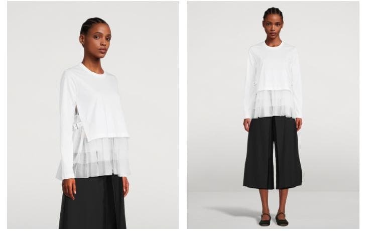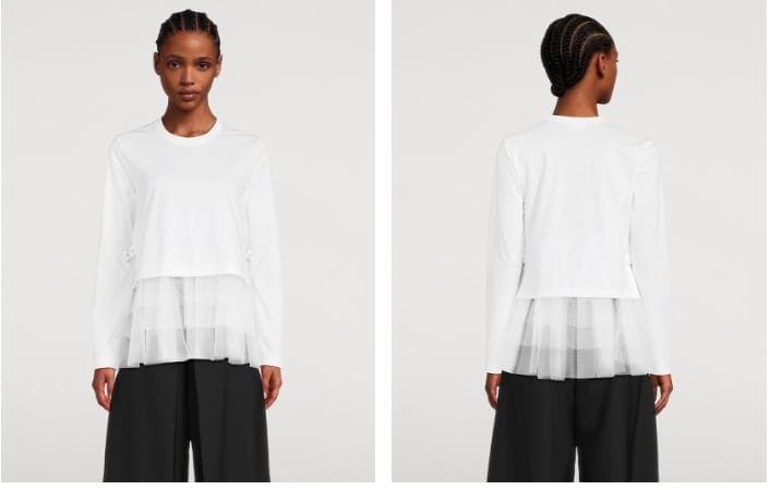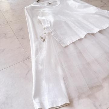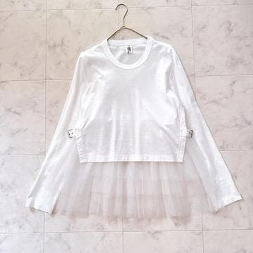![]() ![]() ![]() 日本製コットンTシャツ。裾とサイドスリットにセミシアーチュールを重ね、上品な印象に仕上げました。クルーネック、長袖、縫い目にはバックルストラップが施されています。 【ブランド】Noir Kei Ninomiya(Comme des Garons)/ノワール ケイ ニノミヤ 【商品名】レイヤード Tシャツ/チュール レイヤード ロングスリーブT 【カテゴリ】レディース トップス>長袖Tシャツ/カットソー 【型番】3M-T001 AD2023 【定価】約¥96,300 【カラー】White/ホワイト/白 【素材】Cotton 100% × Nylon 100%/コットン×ナイロン/綿×ナイロン 【サイズ】M 【平置き採寸】肩幅43 袖丈62 身幅47 着丈69 ※素人の採寸故、多少の誤差はご容赦ください。 【コンディション】 使用感わずかの極美品。目立つ汚れ・ダメージは見当たりません アイテム説明 ノワール ケイ ニノミヤ定番のチュールレイヤードT。軽やかなチュールを裾に段々ティアードで重ね、両サイドにピンバックルを配した構築的デザイン。スウェット感覚の肉感あるコットン天竺で、インでもアウトでもバランス良く決まります。 要素 ・サイドピンバックル/ウエスト調整可 ・ティアードチュール切替え(裏地なし・やや透け) ・クルーネック、ロングスリーブ、ストレートヘム (襟もとにもレースあり) ・ややゆったりボクシーシルエット ・コットン天竺(身頃):中厚手、肌当たり柔らか ・チュール:軽量でハリあり ・日本製、品質表示タグあり シーン 街着/モードカジュアル/美術館/モノトーンコーデ/ステージ衣装/イベント 【その他】 ・真贋済み正規品を取り扱う大手ブランド古物ショップより購入。 ・中古・自宅保管品につき完璧を求める方はご遠慮ください。 ・発送は折りたたみ、匿名配送予定です。 ・撮影小物は付属しません。_ _ _¥ギャルソン _¥トップス SKU C739-250925-202155-じ |