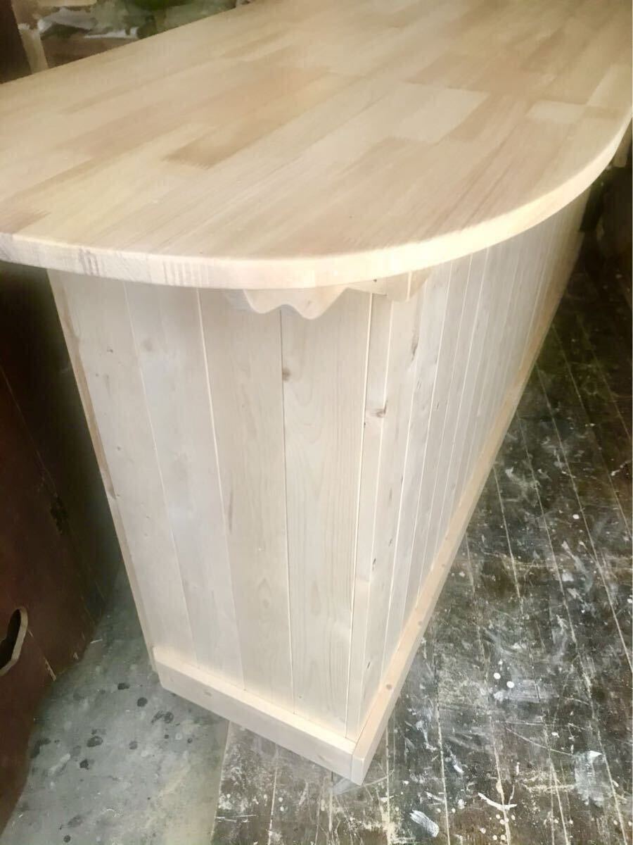 ![]() 商品説明落札後の制作になります。通常で5日間程度の製作期間を頂戴しますが 状況により異なりますので納期のご希望は必ず落札前にご確認お願いします またサイズ・カラー変更のご希望がある場合もご落札前にお知らせ下さいませ こちらは高さ89㎝・幅200㎝・奥行60㎝のカウンターです 配送重量制限の関係で二分割での製作になります(繋ぎ目には多少の隙間・段差が出来る場合がありますのでご了承お願いします) 到着後ミニボルトでどなたでも連結頂けるように加工させて頂きます 各部のサイズは画像にてご確認お願いします (記載サイズには多少の誤差がでます) ご使用に応じてオーダー可能ですので価格等お問い合わせ下さいませ 材質・カラー(全体)透明のワトコオイル仕上げ/天板のみウレタンニス仕上げ 厚み2cm・幅9cmのパイン材/厚み2㎝の集成材使用 発送方法/料金アートセッティングデリバリー/梱包を解いてご指定場所に設置 (通常搬入出来ない場合は別料金がかかりますので経路のご確認をお願いします) お届け不可地域がございますのでご入札前にご確認お願い致します https://www.rakuten.ne.jp/gold/kaguichi-osaka/yamato_area.html 【Eランク・三片合計350㎝以内】 北海道(函館エリア)32900円 北海道(札幌・千歳エリア)37800円 北海道(道北・道東エリア)40300円 青森/31900円 岩手・秋田/29000円 宮城・山形/26300円 福島/24900円 茨城・栃木・新潟/22900円 東京・神奈川・埼玉・千葉・群馬/20900円 長野/19000円 富山・石川・福井・山梨・静岡・広島・愛媛・高知/18000円 愛知・徳島・香川・島根/17600円 滋賀・京都・大阪・兵庫・奈良・和歌山・鳥取・岡山・岐阜・三重/17000円 山口/19000円 福岡・佐賀・大分/23000円 長崎・熊本/24800円 宮崎・鹿児島/26300円 【納期について】 出来る限りご希望に添う様にさせて頂き 現在まで一度も期日に遅れた事はありませんが 万一、天災・事故等による運送会社の遅延 当方の作業上の事情による遅延により起きた損害に対しまして一切の補償は出来ません事をご了承お願い致します また万一配送中に破損が生じた場合は運送会社指定業者による修理対応となります事をご了承お願い致します コメントヒビや節抜けの無い木目のきれいな材料を選び天然木の特徴である伸び縮みも最大限抑える構造でしっかり丁寧に製作しておりますがご使用の過程で稀にヒビや歪みが生じるもございますのでご了承お願い致します(冷暖房の風や日光が直接当たる場所の設置はお避け下さい) 塗料は全て品質の高い物を使用しております。 天板等はニス保護剤塗装・その他は撥水性の高いオイルで仕上げておりますのでシミ汚れが防止できます どちらの品物も化粧板家具とは違い大変しっかりしていますのでメンテナンス次第で末永くご使用いただけます。補修・塗り替えが簡単な様に仕上げておりますので必要となった時は塗料や用具・作業方法についてなどお問い合わせくださいませ ![]() |