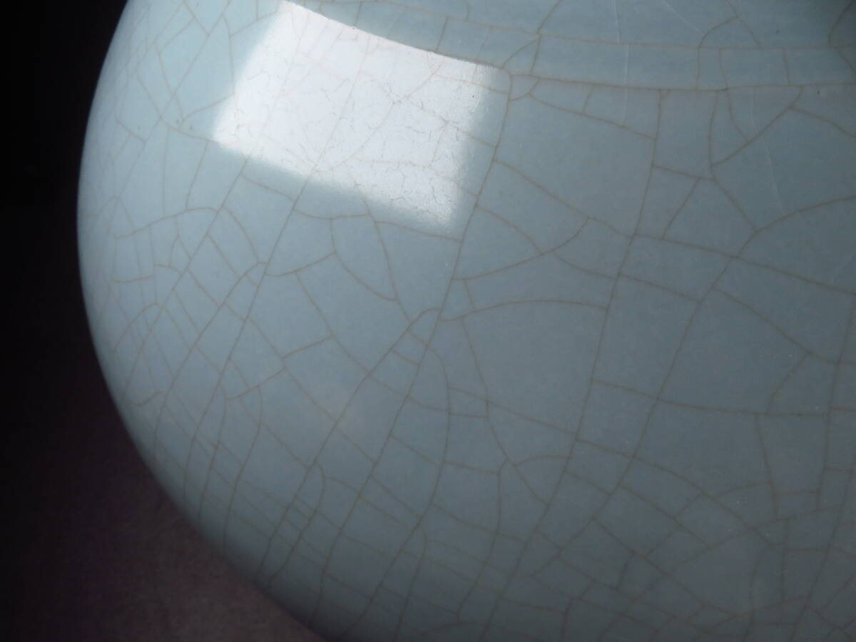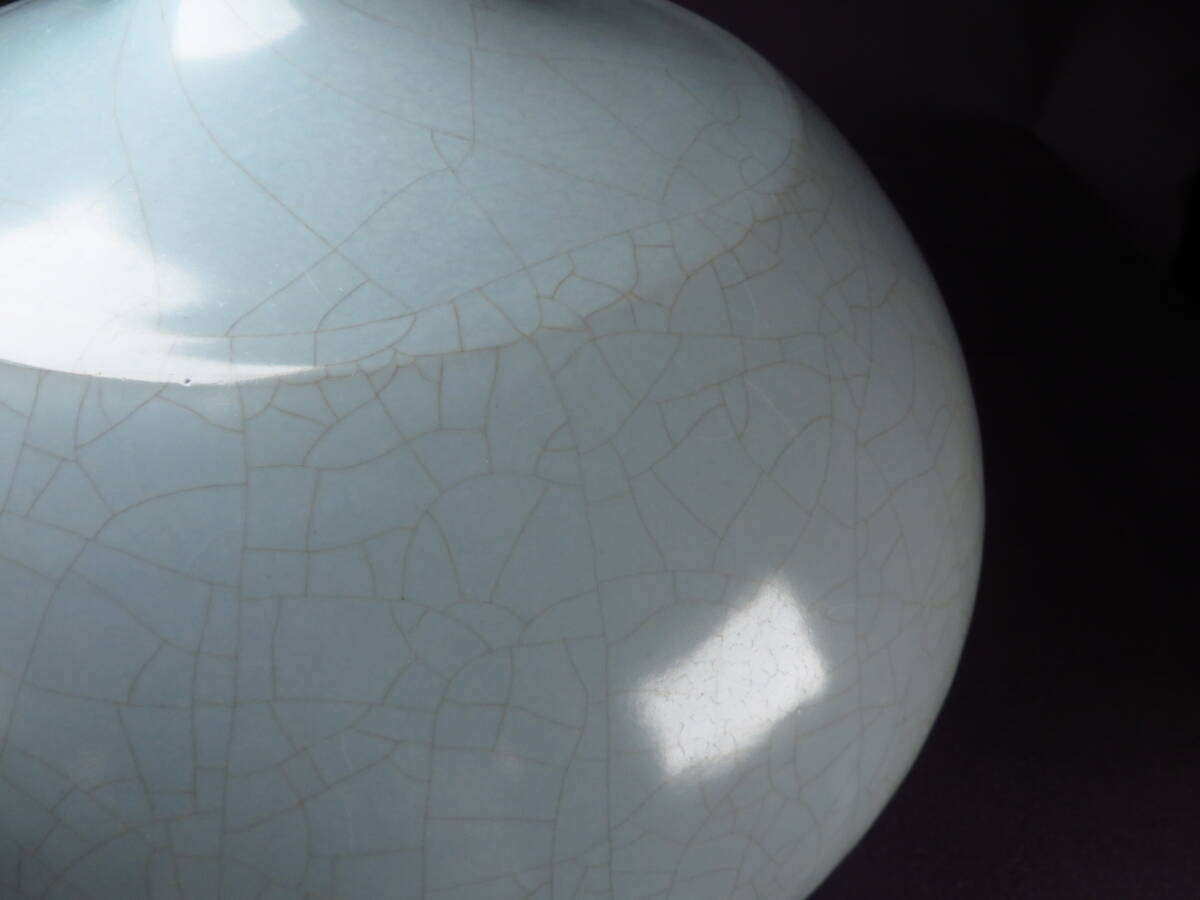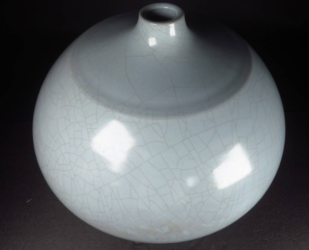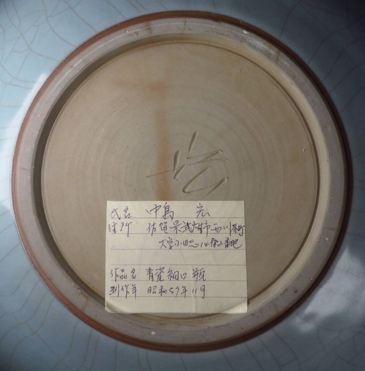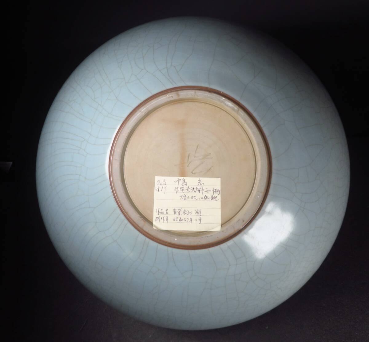 | 【SAKURAYA】直筆書付 大型作品【昭和57年製作 青磁 細口 壷/人間国宝 中島宏】花瓶 飾壺 作家 共箱 骨董品 古美術品 高さ42cm 横幅46cm | ||