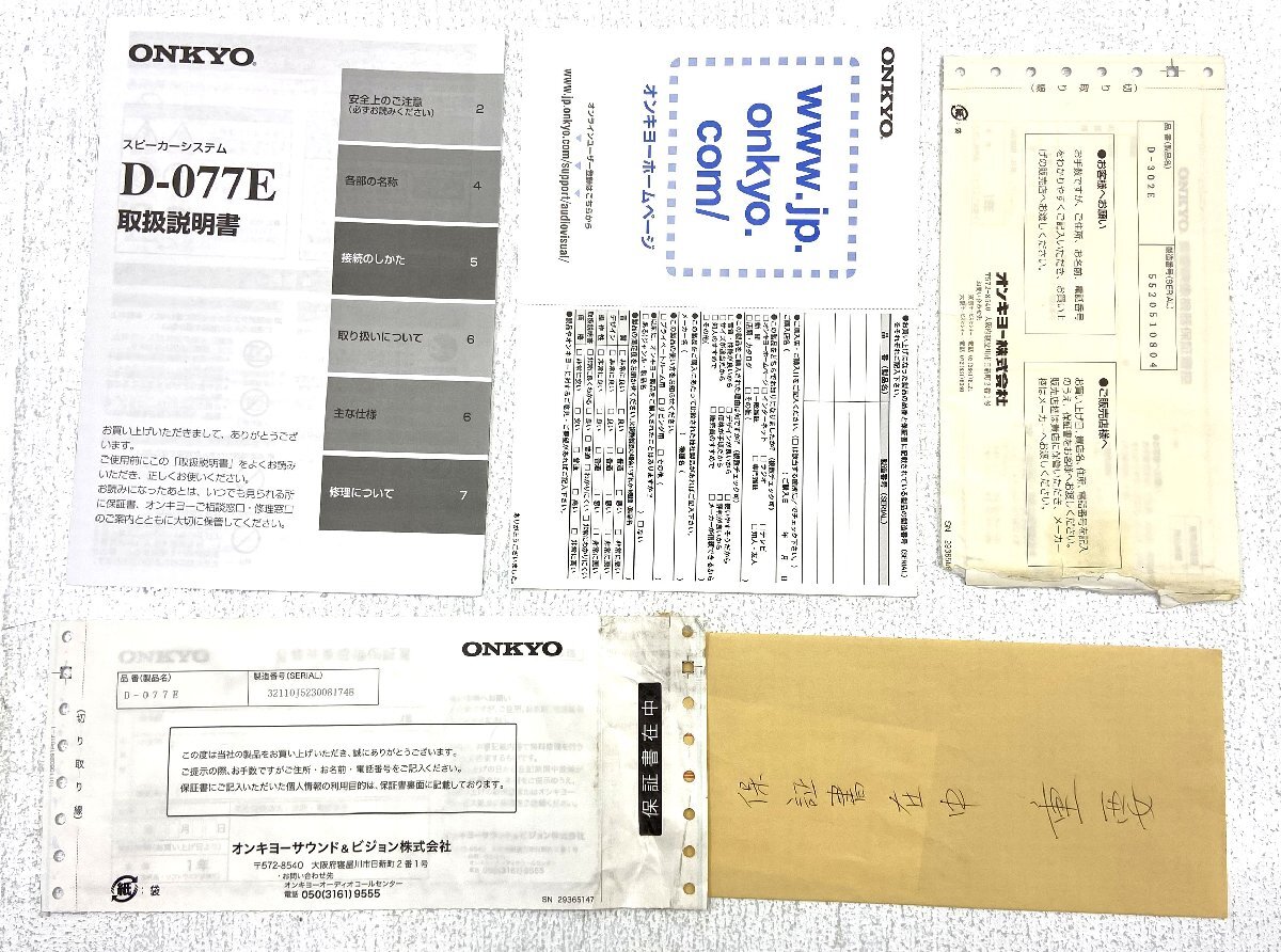 ONKYO スピーカーシステム D-077E(B) ★動作確認済み★ ※同梱不可 | |||