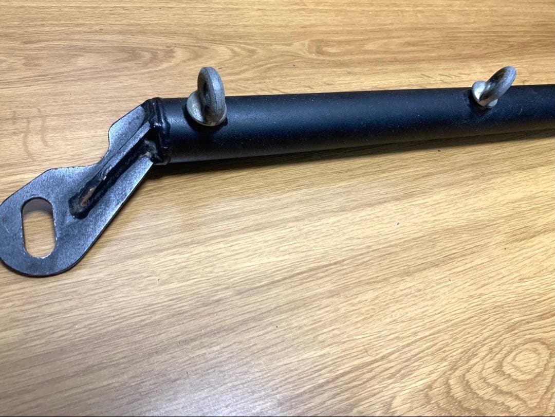 レイル ブレースバー NA8にて使用 4点式シートベルト用のアイボルトも付いています。 小傷、わずかな錆などありますがまだまだ使用に問題ありませんのでボディ補強、4点式シートベルト用にどうぞ。