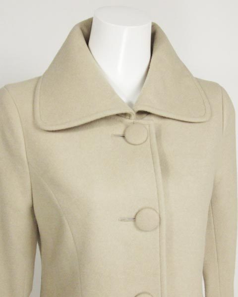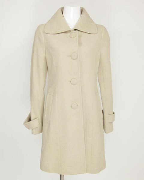 | キュートなデザインのコート♪くるみ釦が女性らしい印象ですよ。優しいベージュカラーがお顔を明るく見せてくれます。スカートでもパンツでも合わせられる絶妙なお丈です。定番デザインなので長い間お使い頂けますよ。 |