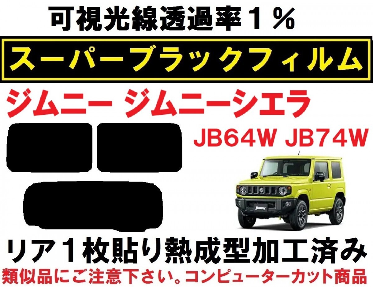 JB64Wジムニー JB74Wジムニーシエラ用スーパーブラック『可視光線透過率1%』1枚貼り成型加工済みフィルム リア3面セットです。(専用施工液付き) 平成30年7月~ JB64W JB74W ジムニー・ジムニーシエラ に適合します。 ※適合などご不明な点は、お気軽にご質問下さい。 ◇◆◇施工に便利なプロ仕様のヘラセット付き商品も出品中です◇◆◇ こちら ◇◆◇精密コンピューターカット◇◆◇ 貼りやすさを最優先に各部のサイズ・形状など微調整し、改良を重ねた独自のデータを製作。 高精度な最新・大型カッティングプロッターによるカットで正確で滑らかなカットラインを再現しています。 施工業者だからわかる、貼りやすいサイズ・形状に仕上げています。 ◇◆◇リア1枚貼り成型加工済み◇◆◇ リアガラスの湾曲に合わせて熱成型加工して有りますので、平面に貼るのと同様にたるみが出ず1枚貼り出来ます。 ※最適な状態に成型加工して有りますので、ヒートガン(ドライヤー)等は不要です。 ◇◆◇専用施工液付属◇◆◇ 軽視されがちな施工液ですが、貼りやすさに大きく関わる部分になります。中性洗剤などで代用せず、必ず付属の専用施工液をご使用下さい。 濃度については車種・季節などにより変わりますので、個別にお知らせ致します。 ◇◆◇業務用高品質フィルム使用◇◆◇ 使用しているフィルムは、安心の国内メーカー 業務用高品質フィルム「ニュープロテクション」シリーズです。(可視光線透過率1%) 業務用フィルムの中で最も濃いタイプで、紫外線99%カット 遮熱性も高めです。 同シリーズで可視光線透過率 5% 10% 15% 25% の物もご用意出来ます。 ご希望の場合は、ご落札後濃さの指定をして下さい。(部分的な色変えも可能です) ご指定の無い場合、全て1%になります。 部分的にフィルムが必要になった場合、単品販売も承ります。 他にもジムニー用フィルム、各種出品中です。こちらもご覧ください。 ご不明な点など有りましたら、お気軽にご質問下さい。 | ||