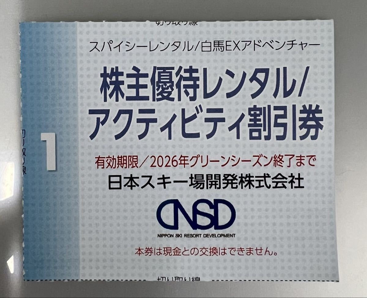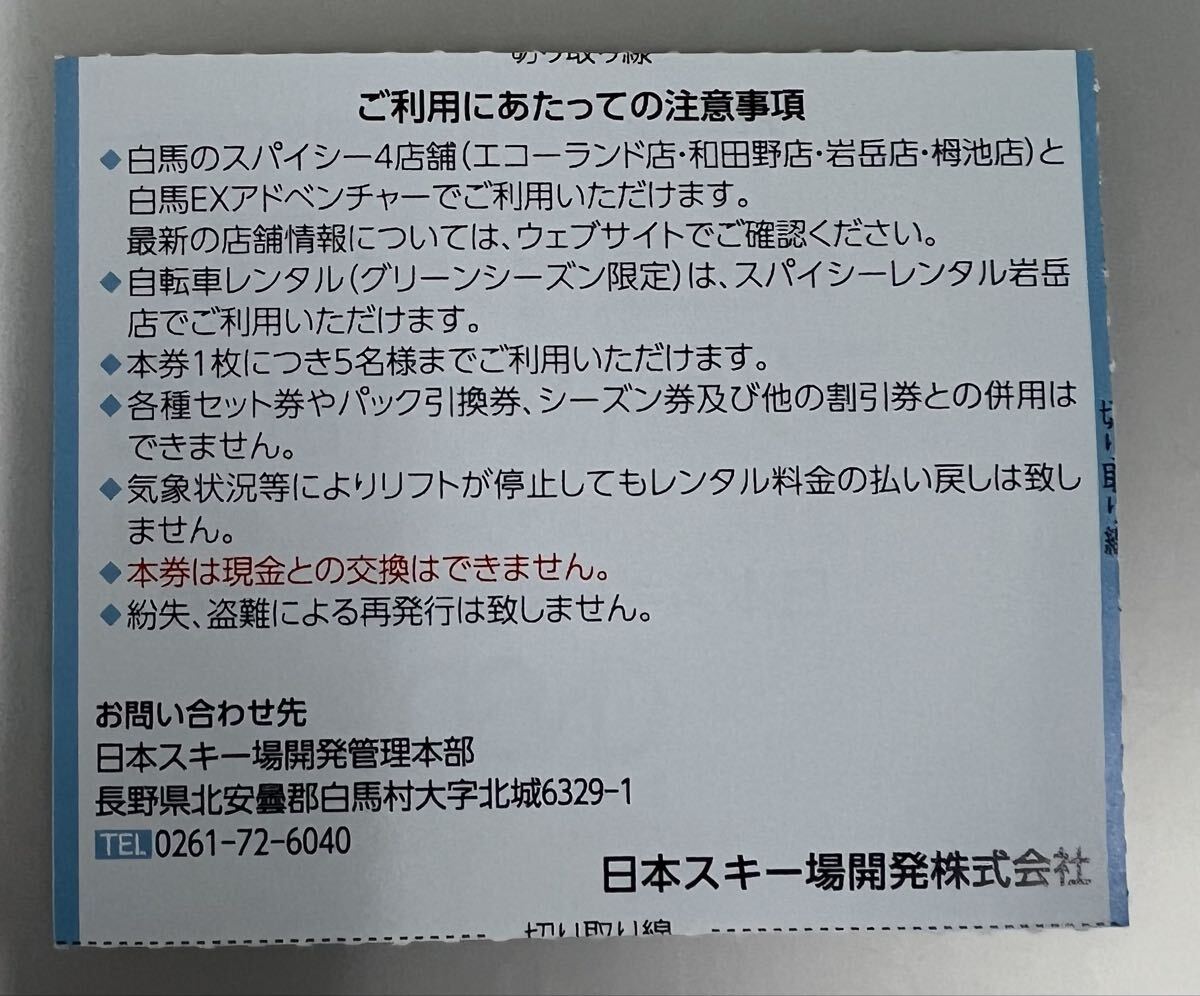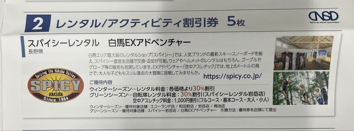 日本スキー場開発 株主優待券「スパイシーレンタル アクティビティ割引券」です。
