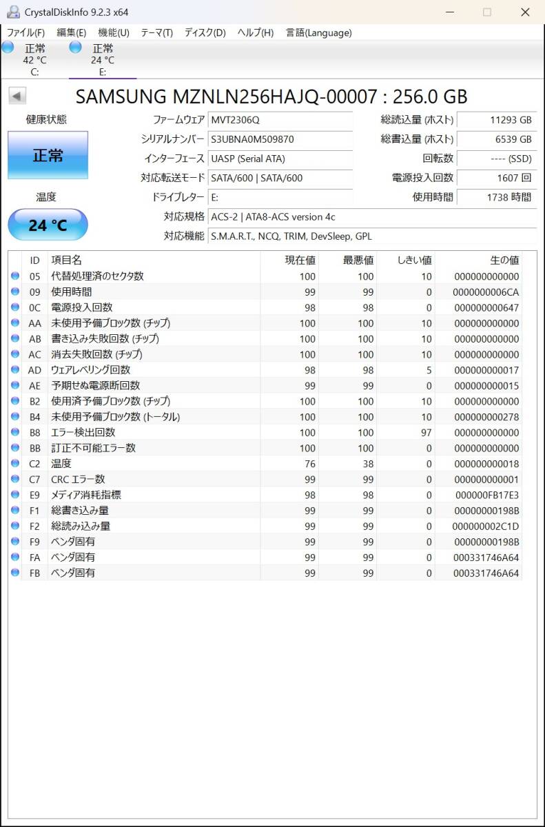 | ★☆1円 ~スタート☆Samsung SSD PM871b M.2 2280 MZ-NLN256C 256GB 使用時間:1738H☆★ | |
