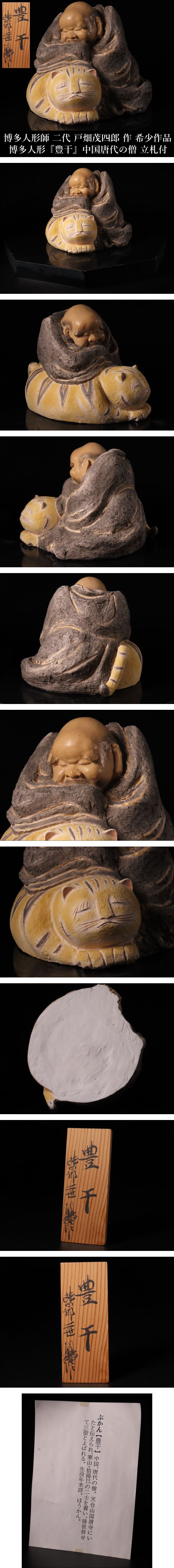 【ONE'S】博多人形師 二代 戸畑茂四郎 本人作 希少作品 博多人形 『豊干』 中国唐代の僧 置物 立札付 日本美術 伝統工芸 | |||