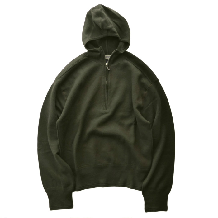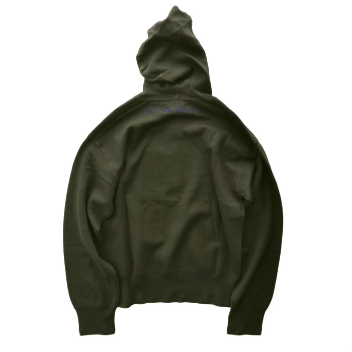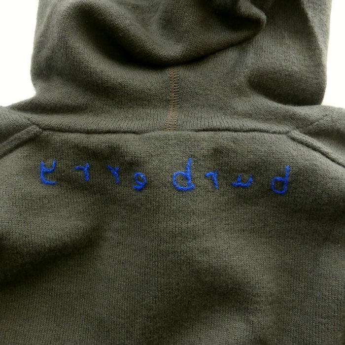 | バーバリーのニットフーディ。 背面にブランドネームを反転し、刺繍を施したデザイン。 寒色系の絶妙なカーキ色にビビットなブルーのアクセントの効いたカラーリングが魅力。 ハーフジップ仕様のデイリーに使いやすいデザイン。 小さめのフードやタイトなリブによるコンパクトなシルエットが様々なスタイルで活躍します。 リブの凹凸や、インサイドアウト仕様など細部までこだわりの詰まった逸品です。 |