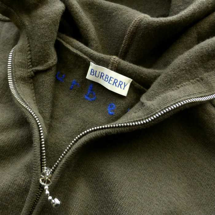 | バーバリー(Burberry) ハーフジップ ニット フーディ パーカー インサイドアウト 刺繍 デザイン S カーキ ウェア(美品)中古 |