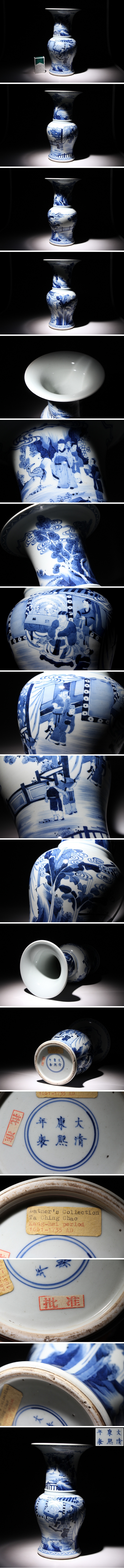 | ◇商品名◇ | 実業家コレクト放出 760 大清康熙年製 染付瓶 人物紋 高さ約35.6cm (検)青華 飾瓶 花瓶 唐物 中国美術 | ||
