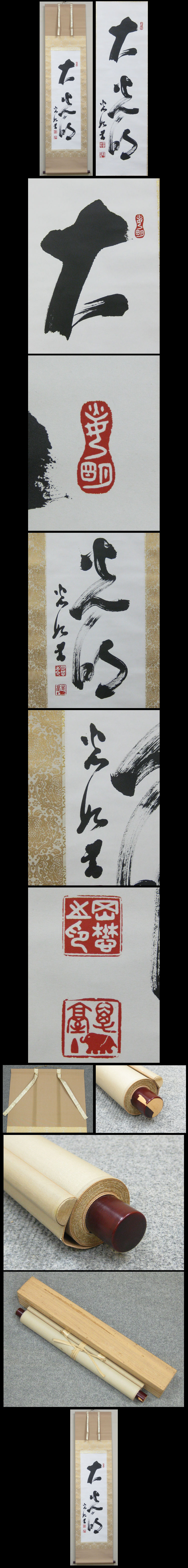 【岡田茂吉】1882-1955 世界救世教教祖。東京生。号は大樹、自観、仁斎。 初め大本に入信、布教につとめるが昭和九年に脱退。 浄霊による治療を中核とした布教活動を始め大日本観音会を創立する。 のち世界救世教に改編。箱根・熱海に美術館を創設。昭和30年(1955)歿、73才。 ★商品サイズ★ ■掛軸 181×43.5cm ■作品 104×30.5cm ★商品の状態★ 作品は概ね良い状態です。 表具上部に焼けがあります。軸先に剥げがあります。 ご承知のうえご入札をお願いします。 時代など詳しくは画像にてよく確認のうえでご検討いただければと思います。 どうぞよろしくお願いいたします。 |