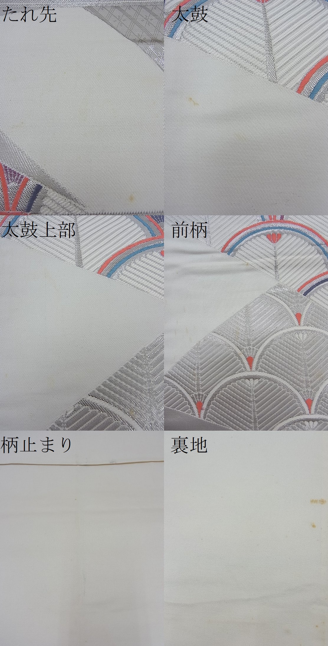 | 【正絹】 状態は接写画像のように たれ先・太鼓・太鼓上部・前柄に薄いシミ、 柄止まりに折れ山の薄い汚れ・薄い汚れ、 裏地にアクがございますが その他特に目立ったシミ汚れなどもなく大変良い状態です。 大変上質な逸品になります。 お安く出品致しますので、是非この機会にいかがでしょうか?