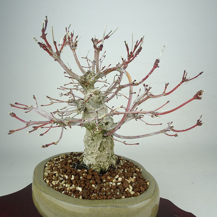 | ■植物ですので撮影時期や季節によって剪定などの手入れにより写真から変化がございます。撮影日をご確認のうえ、ご注文ください。 ■春頃~7月上旬。葉すかし、葉刈りをおこないます。目的として全体的な枝や葉の量を減らし風通しを良くし、幹にしっかりと日光を当てるため。 【紅葉盆栽】 春先に芽吹き、夏頃には新緑、秋頃には紅葉、冬は寒樹姿と四季を通して楽しめる植物です。 もみじには、葉色、葉形、樹形、春先から真紅や紫紅色の芽を吹くもの、秋の紅葉で黄色に染まるものや斑入り葉、獅子葉、細葉、枝垂れ性など非常に多くの種類があります。 |