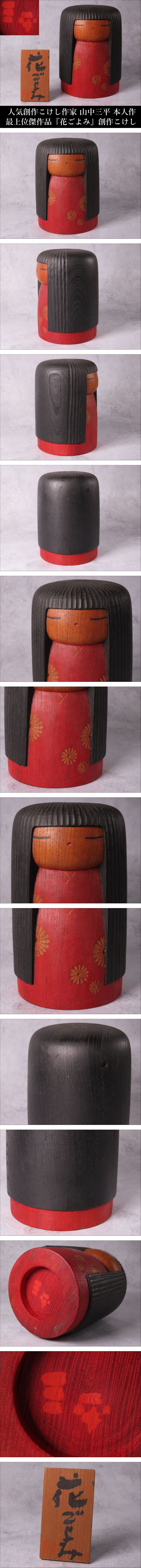 【ONE'S】人気創作こけし作家 山中三平 本人作 最上位傑作品 『花ごよみ』 創作こけし 高16.2cm コケシ 郷土玩具 伝統工芸 立札付 | |||