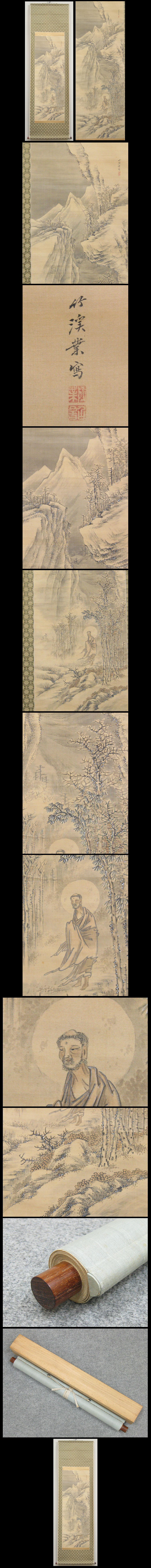 【中林竹渓】1816-1867 幕末の画家。文化13年生まれ。中林竹洞の長男。 父にまなび,のち山本梅逸にあずけられる。写生を主とした洋画風をとりいれた。 奇行でも知られた。慶応3年4月22日死去。52歳。 名は成業。字は紹文。通称は金吾。別号に臥河居士。 ★商品サイズ★ ■掛軸 191×56.5cm ■作品 119×42cm ★商品の状態★ 作品にわずかなしみ汚れ、皺があります。 ご承知のうえご入札をお願いします。 時代など詳しくは画像にてよく確認のうえでご検討いただければと思います。 どうぞよろしくお願いいたします。 |