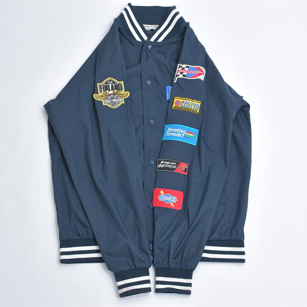 Used パッチワーク ワッペンカスタム ナイロン ジャケット ジャンパー アウター ヴィンテージ ブルゾン スタジャン ネイビービンテージ 古着 メンズLサイズ| 出价者 | 信用 | 价格 | 时间 |