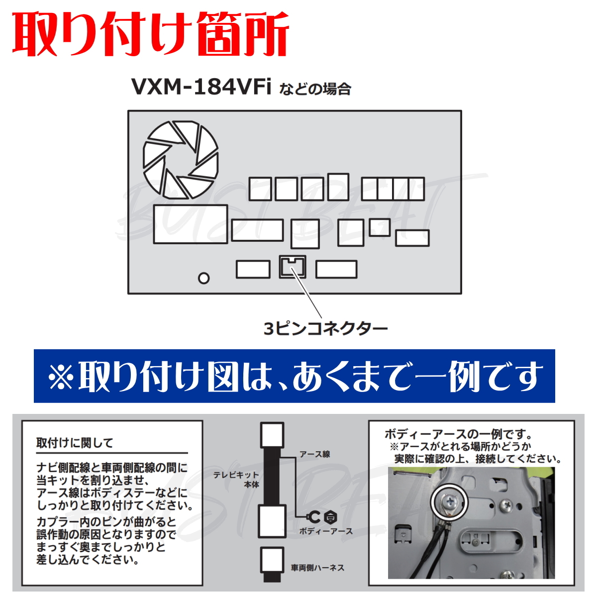 ナビ背面コネクターへ当商品を差し込みアースを固定するだけ