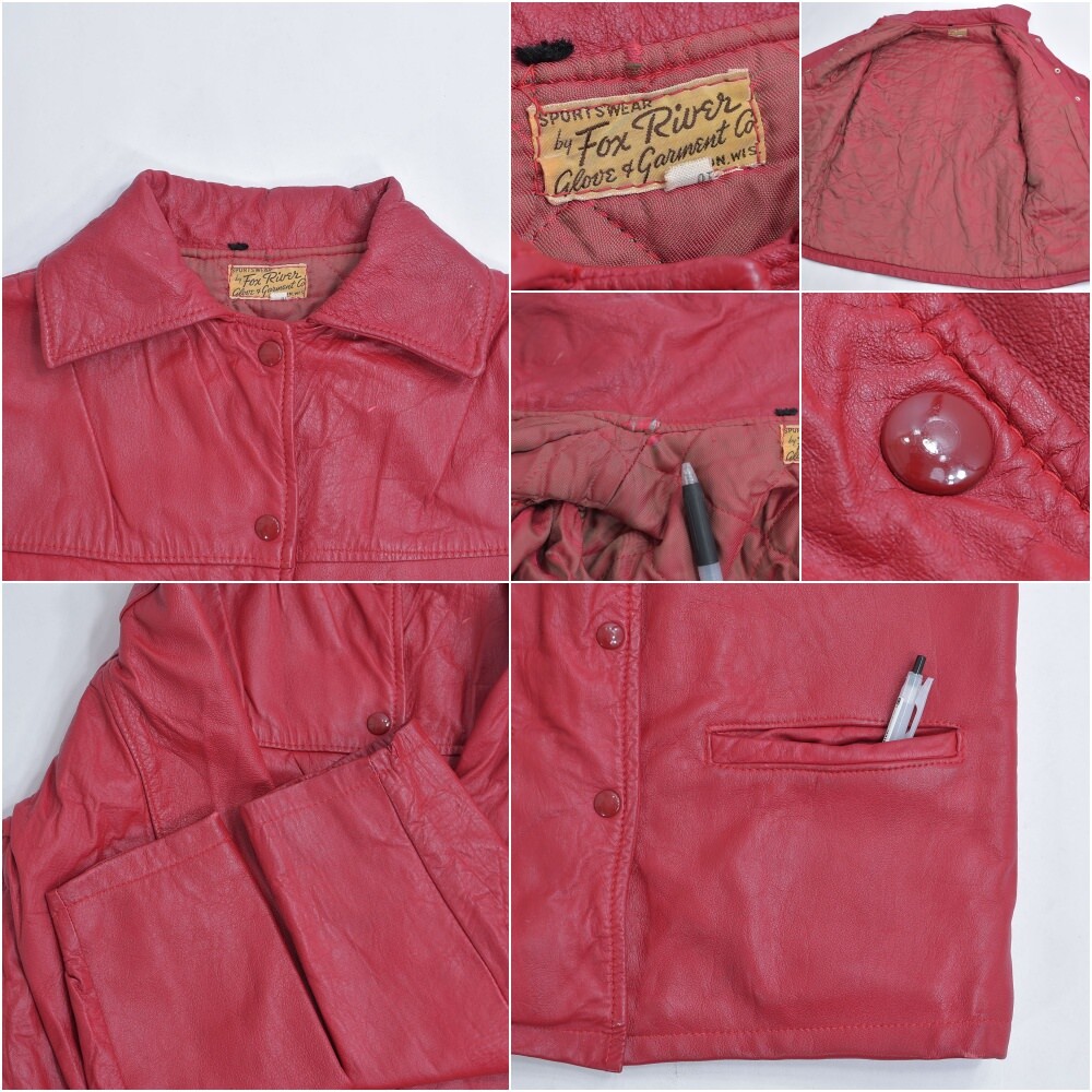 40~50s FOX RIVER フォックス・リバー レザー カーコート 本革 革ジャン ヴィンテージ カバーオール レッド ビンテージ USA アメリカ古着 レディース相当| 出价者 | 信用 | 价格 | 时间 |