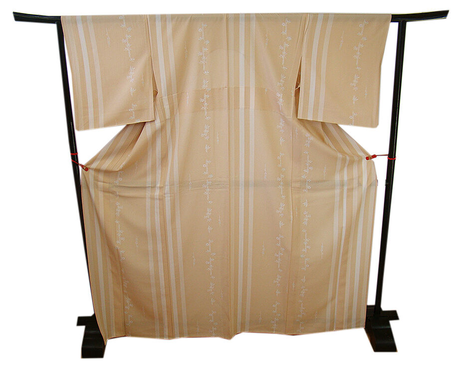 | 商品説明 | こちらのお品は夏物でございますので、7月~8月にお召頂ければと思います。 「絽」と言えば、紗と双璧を成す夏のお着物の生地で その最大の魅力は絶妙の透かし加減でございます。 清涼感溢れる地の風を通すしなやかさは夏に着物を着るという贅沢を 快適に愉しませてくれることでしょう。 着物には、大きく分けて「袷(あわせ)の着物」と「単衣(ひとえ)の着物」と「夏着物」があります。 反物(表地)を着物に仕立てるときに、裏地類をつけるものを袷の着物、 つけないものを単衣の着物と呼び、胴裏や八掛といった裏地がつかない一枚ものの着物です。 また裏地がないため、座る時などにヒップのラインが目立たないよう、 居敷当て(いしきあて)の生地をつけることもあります。 居敷当ては付いておりません。 とてもしなやかなさらっとした肌触りが極上の着心地を誘う滑らかな「駒絽」の生地、 白茶色地に太縞に花草柄の染柄が美しく華やかな着物姿を演出しております。 |